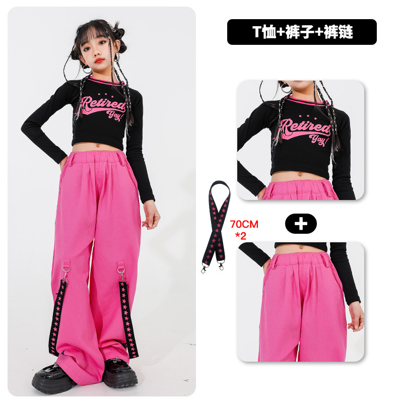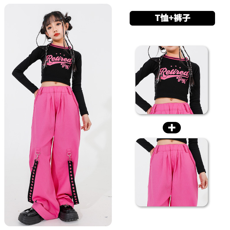 • 핑크 바지 세트 [검은 긴 소매 + 핑크 바지]]