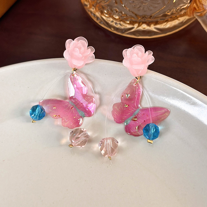 핑크 꽃 크리스탈 나비 귀걸이 여성 부드러운 귀걸이 슈퍼 요정 술 틈새 디자인 고급 귀걸이 귀걸이스토어 가기