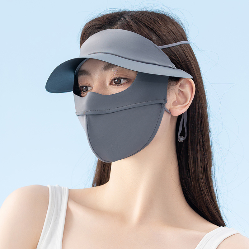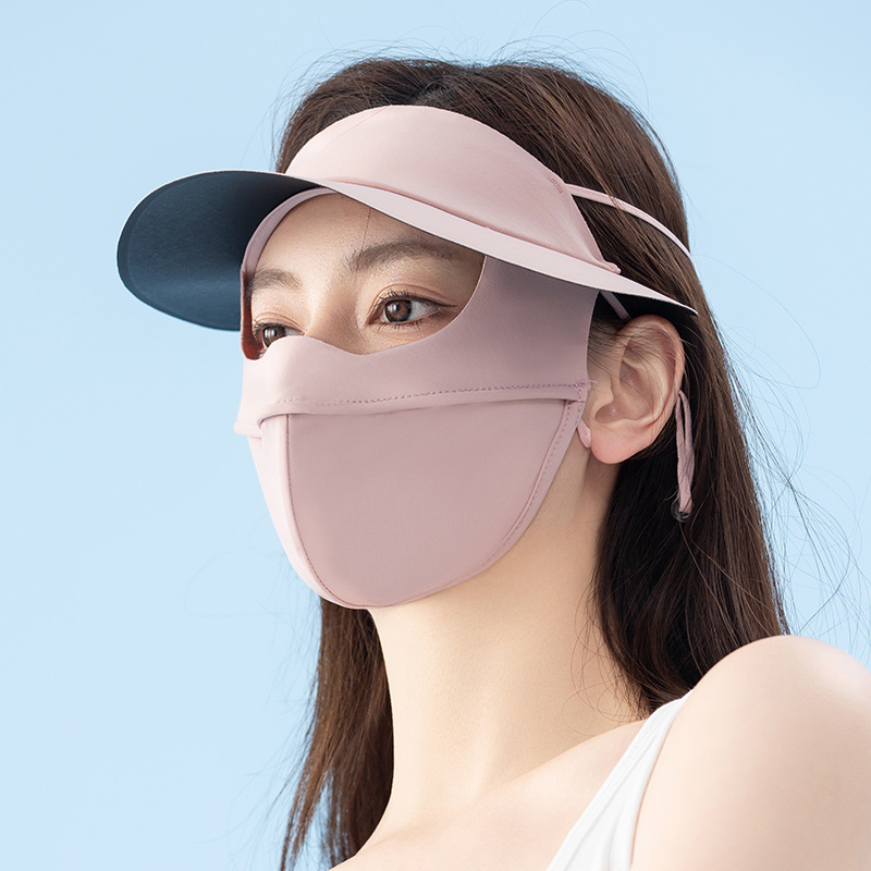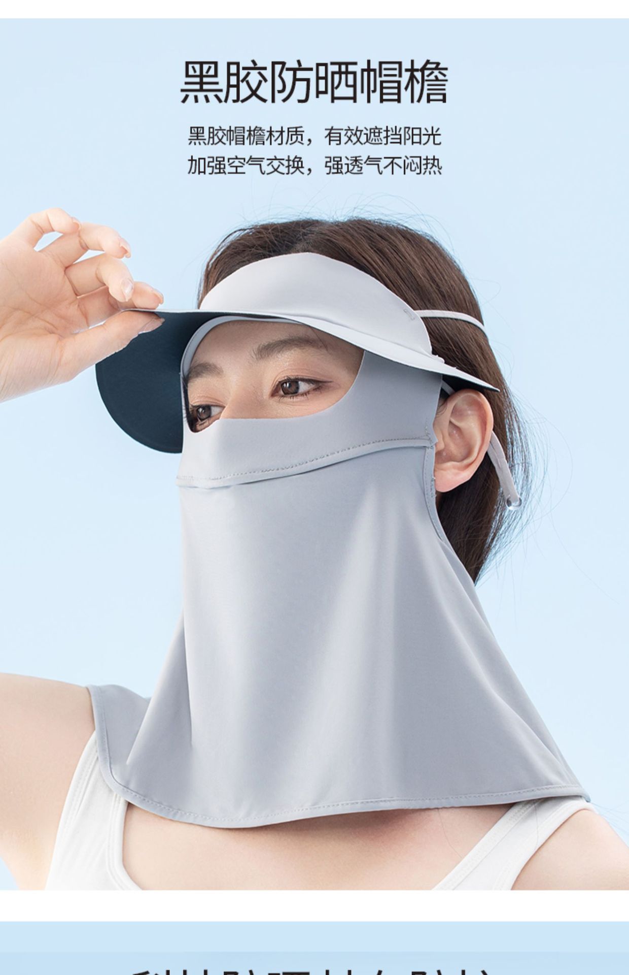 봄과 여름 2024 여성을위한 태양 보호 마스크 새로운 UV 보호 태양 보호 세트 모자 전체 얼굴 키니 마스크 블랙 접착제