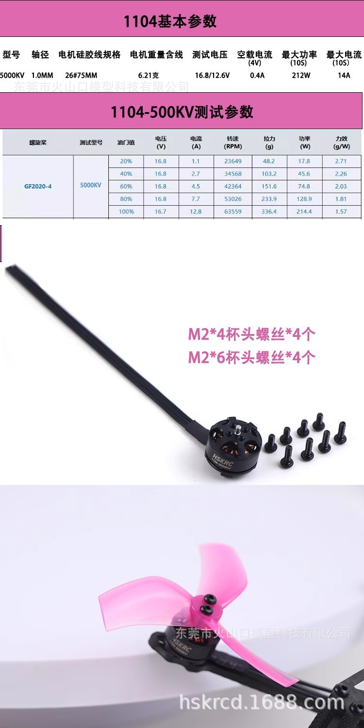 HSKRC 1104 5000KV 브러시리스 모터 소형 미니 FPV 실내 횡단 항공기 모델 항공기스토어 가기
