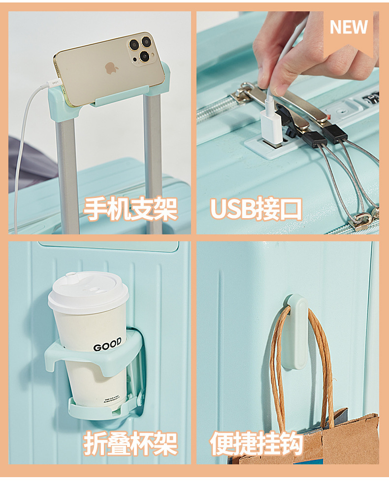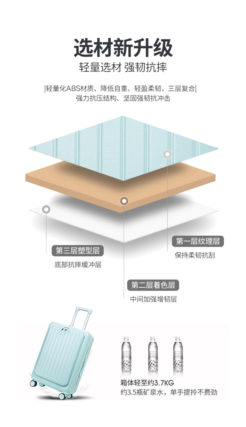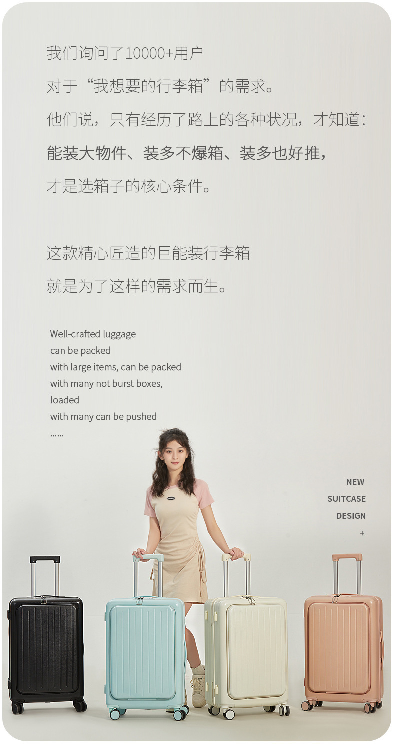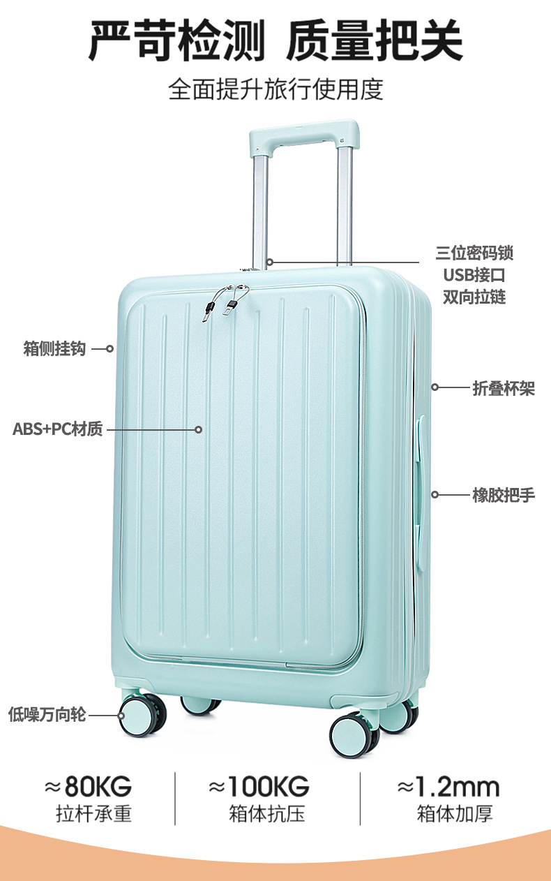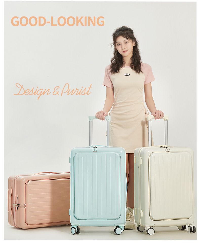 용성 경량 대용량 수하물 전면 개방 20 인치 탑승 케이스 뮤트 유니버설 휠 수하물 트롤리 케이스
