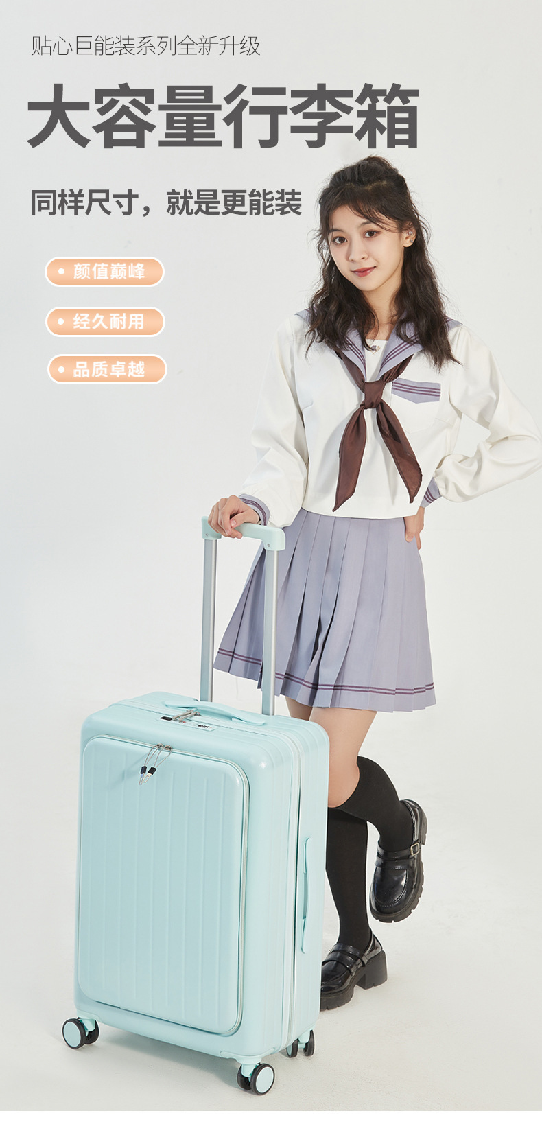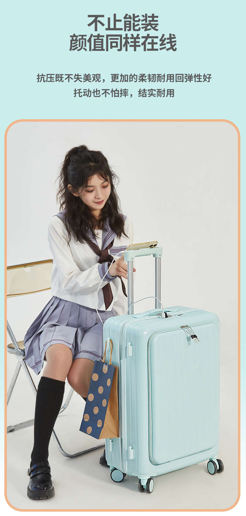 용성 경량 대용량 수하물 전면 개방 20 인치 탑승 케이스 뮤트 유니버설 휠 수하물 트롤리 케이스스토어 가기