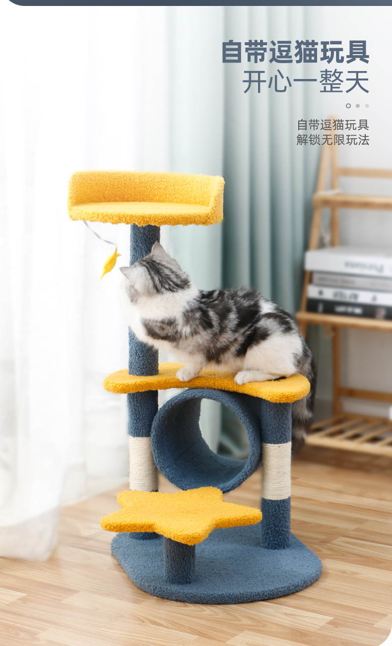 2024 국경 간 공급 고양이 장난감 애완 동물 용품 도매 Xingyue 고양이 등반 프레임 고양이 둥지 통합 기둥 스크래치 보드