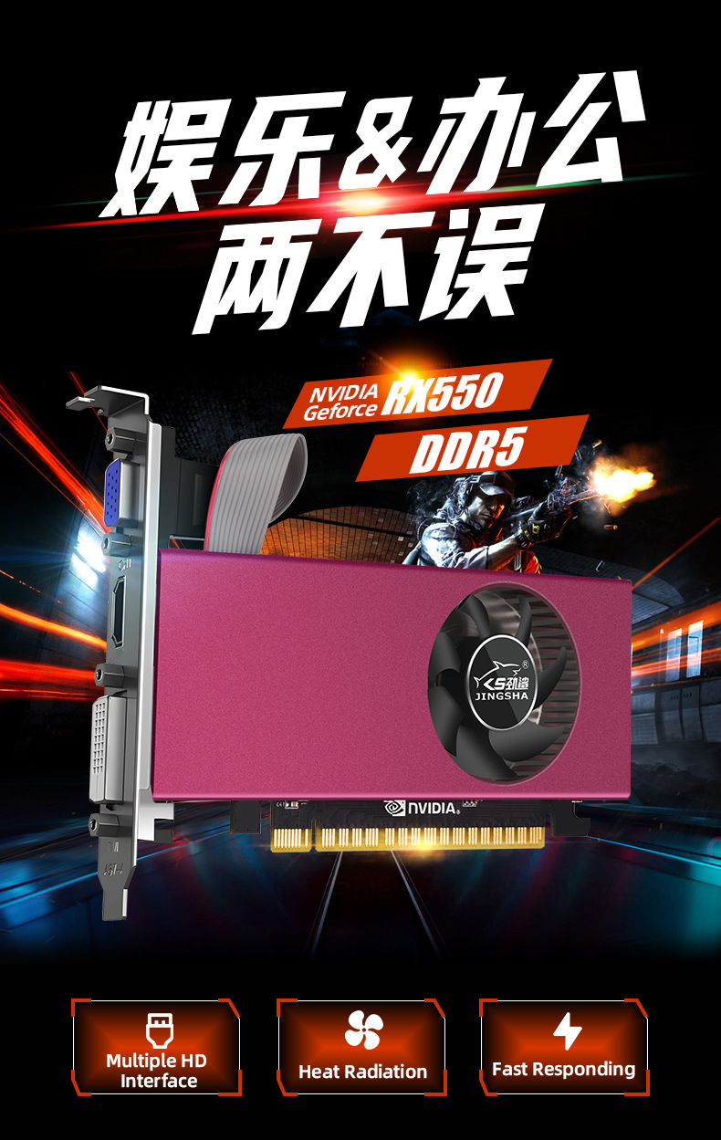 Jinsha RX550 DDR5 4G 독립 그래픽 카드 보급형 홈 오피스 나이프 카드 절반 높이 HD+VGA+DVI스토어 가기
