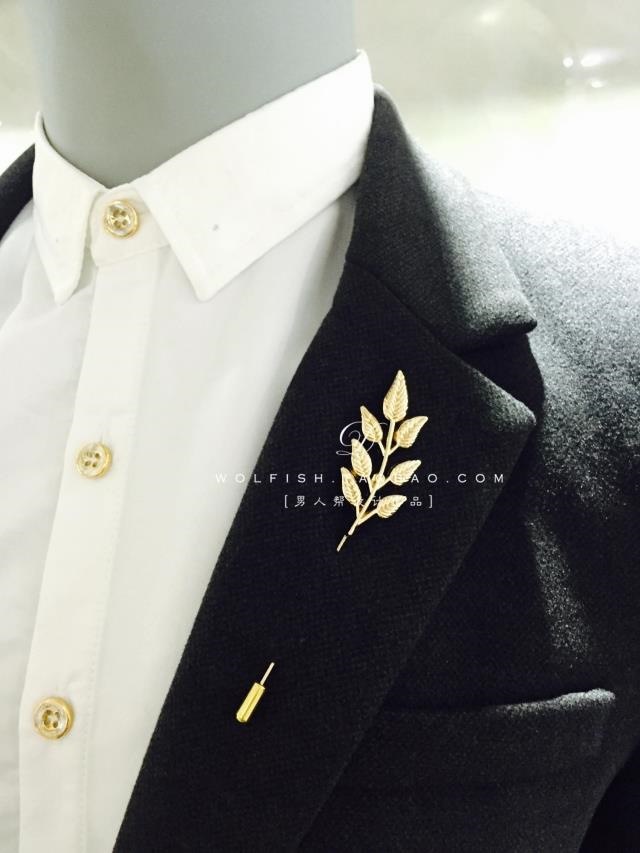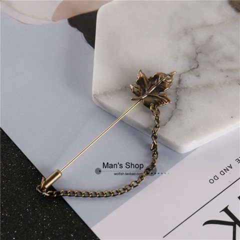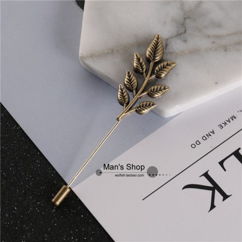 한국의 새로운 밀 귀 한 단어 긴 바늘 패션 귀여운 남자 세트 셔츠 브로치 재킷 잎 핀 액세서리
