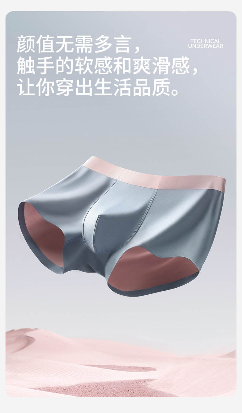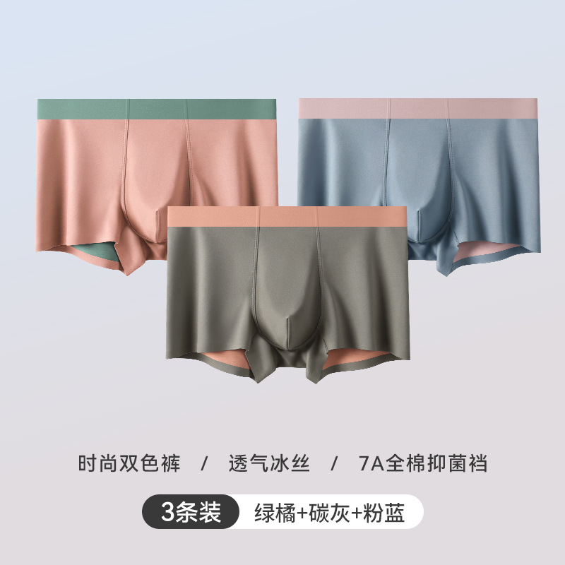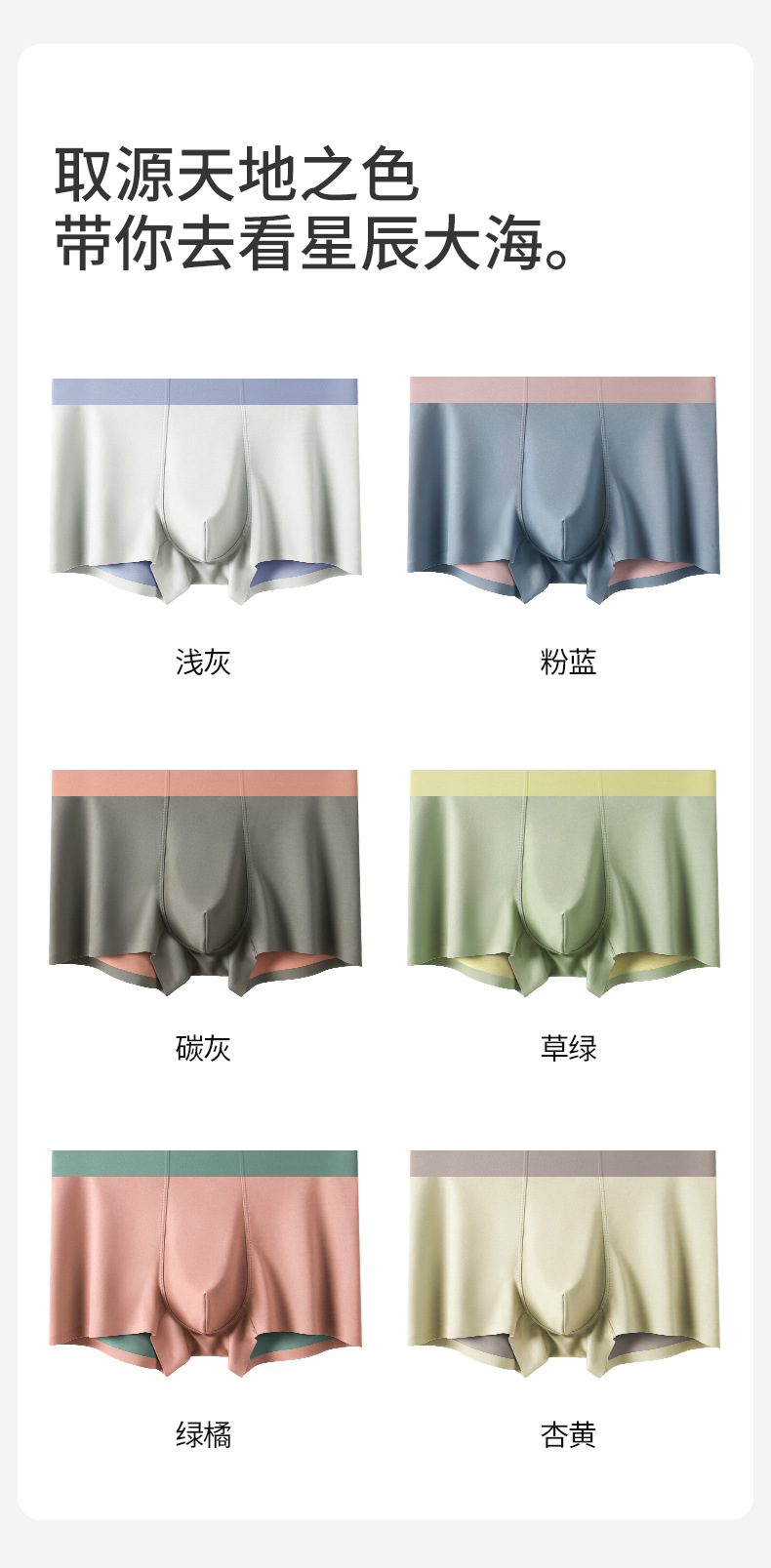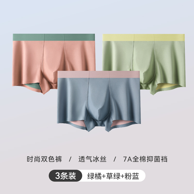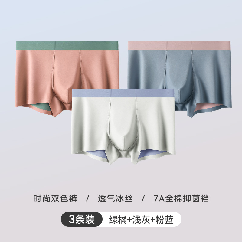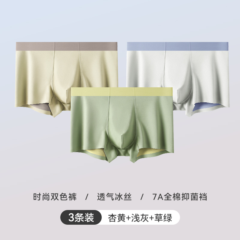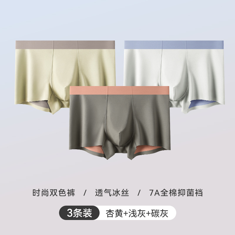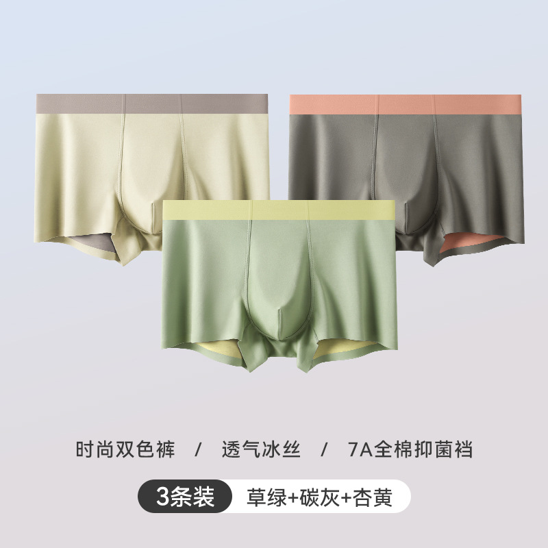 남성용 아이스 실크 사각팬티, 무봉제 얇은 항균 통기성 사각팬티, 트렌디한 봄 여름 신상품스토어 가기
