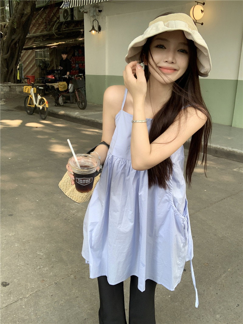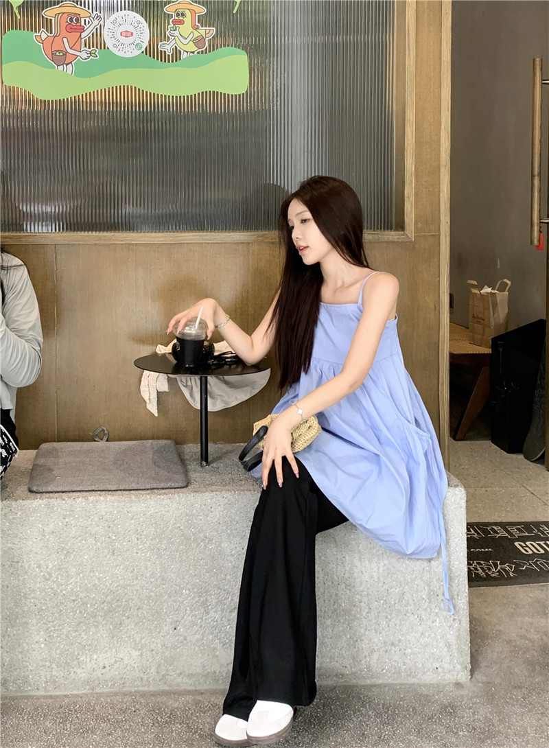 실제 샷 디자인 감각 틈새 여름 새로운 느슨한 올 매치 민소매 조끼 캐미솔 달콤한 나이 감소 탑 61328스토어 가기