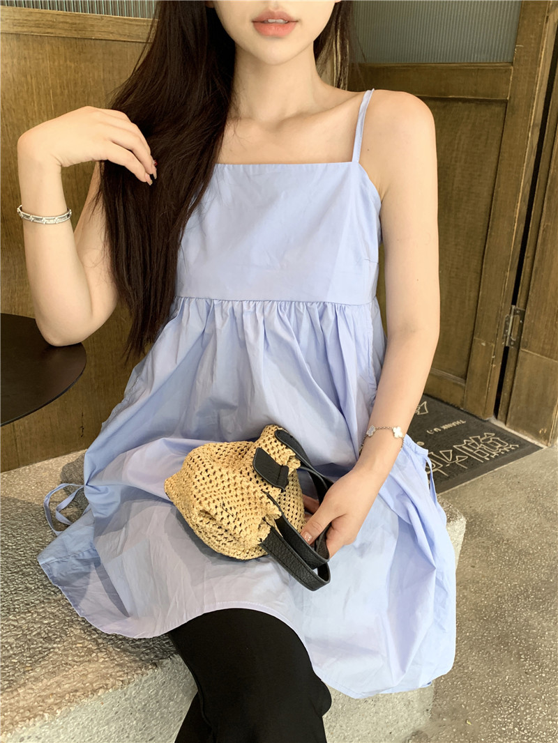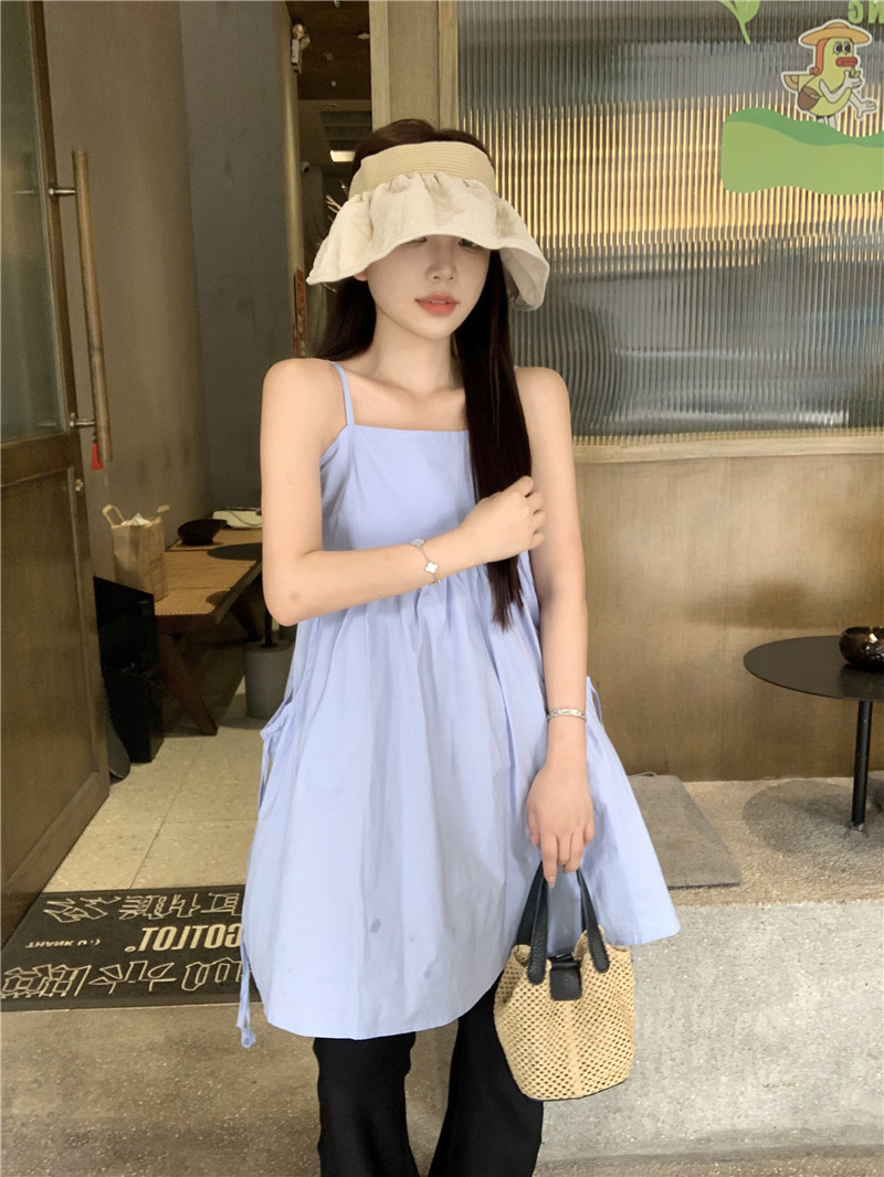 실제 샷 디자인 감각 틈새 여름 새로운 느슨한 올 매치 민소매 조끼 캐미솔 달콤한 나이 감소 탑 61328