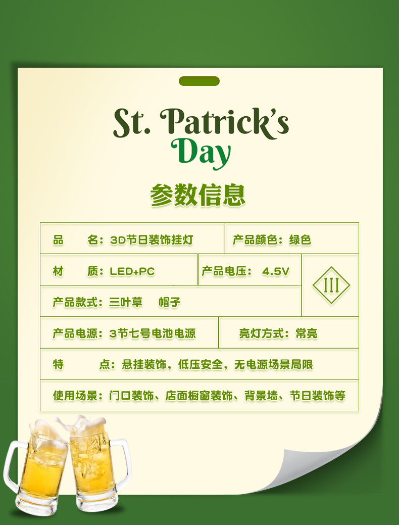 국경 간 세인트 패트릭 아일랜드 휴일 장식 클로버 분위기 컬러 조명 장식 빨판 교수형 조명