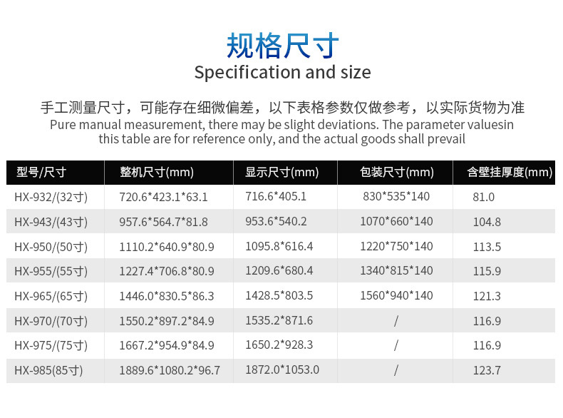 • 32inch 2K【721.9*425.0*74.8mm】