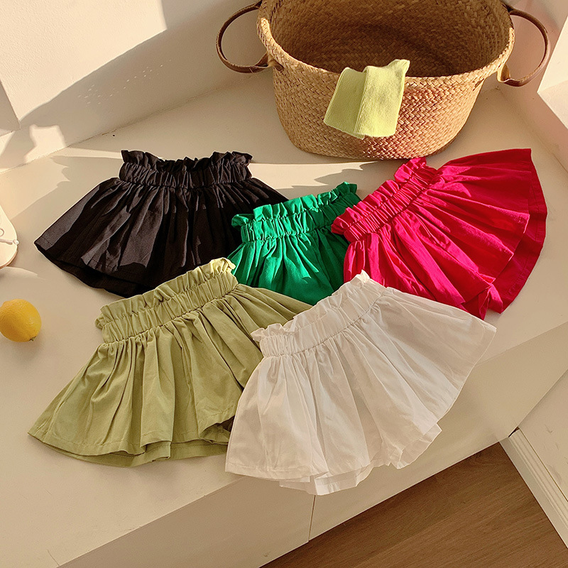 한국식 소녀 반바지 팬티 스커트 여름 얇은 순수 캔디 컬러 서양식 아우터 착용 어린 소녀 꽃 봉오리 허리 핫팬츠 패션스토어 가기