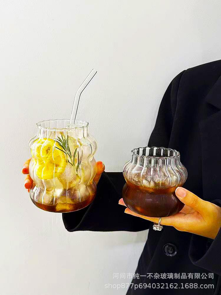 통통한 두두 커피 유리 컵 짚과 스타일 가정용 소녀의 높은 음료 차가운 물 음료 우유 차 컵스토어 가기