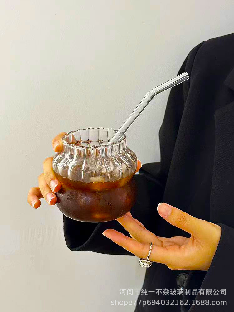 통통한 두두 커피 유리 컵 짚과 스타일 가정용 소녀의 높은 음료 차가운 물 음료 우유 차 컵