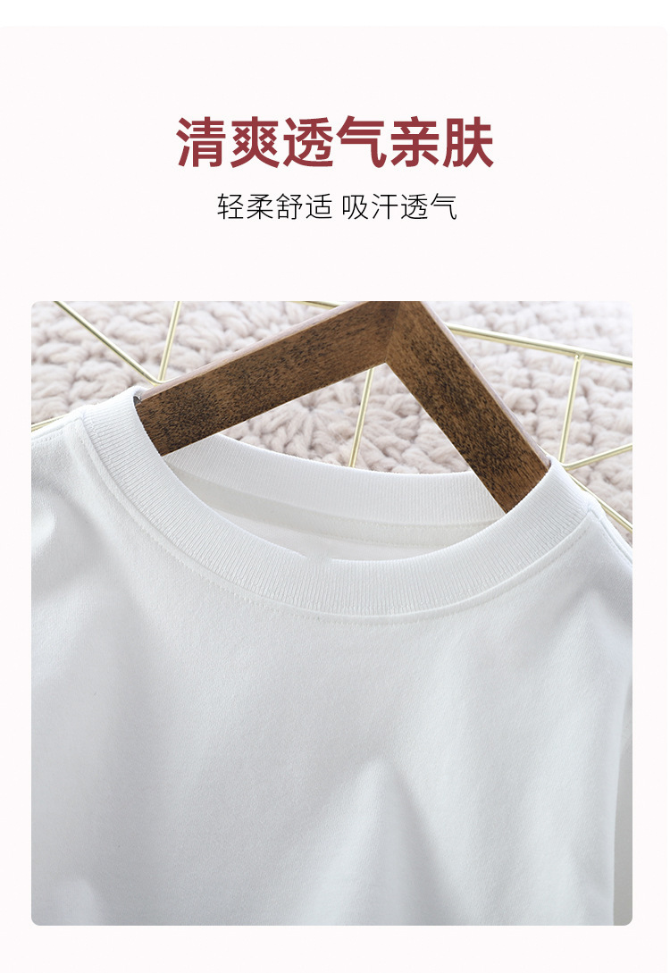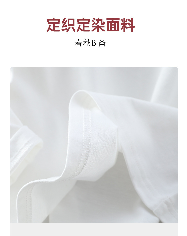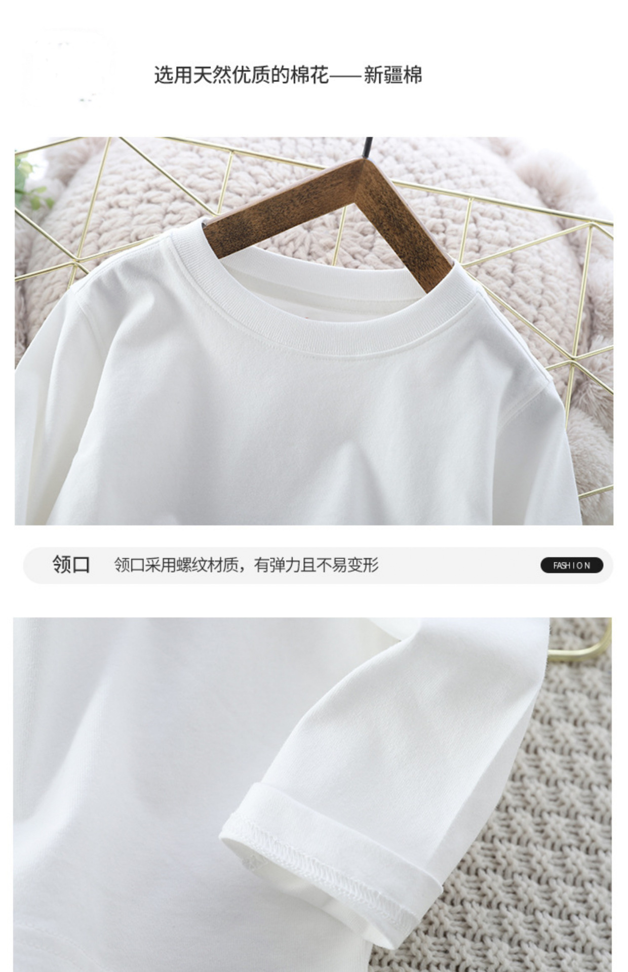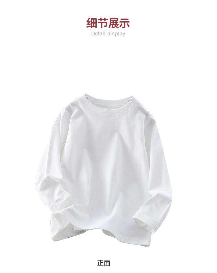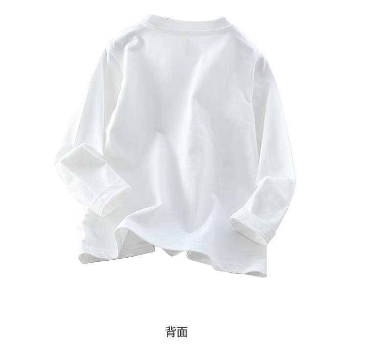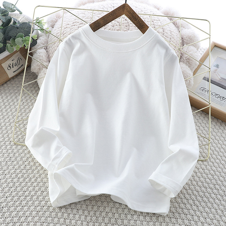 순면 소년 소녀 봄과 가을 어린이 흰색 긴팔 티셔츠 한국식 중형 및 대형 어린이 단색 바지 셔츠 탑 여름