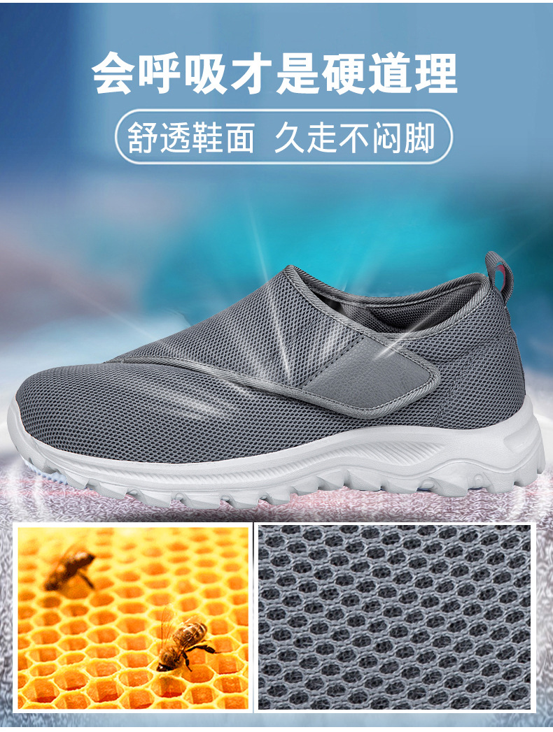 남성 노인 싱글 버클 아빠 신발 그물을 운동화 수술 후 노인 신발 남성 뚱뚱한 발과 부은 발 특수 신발
