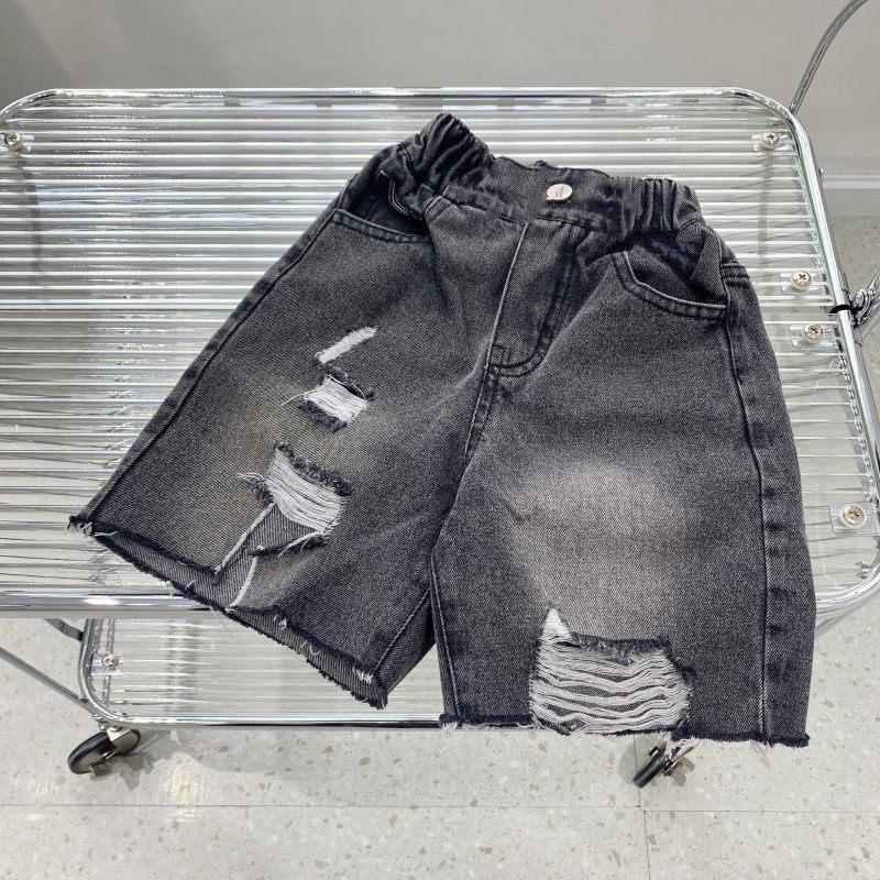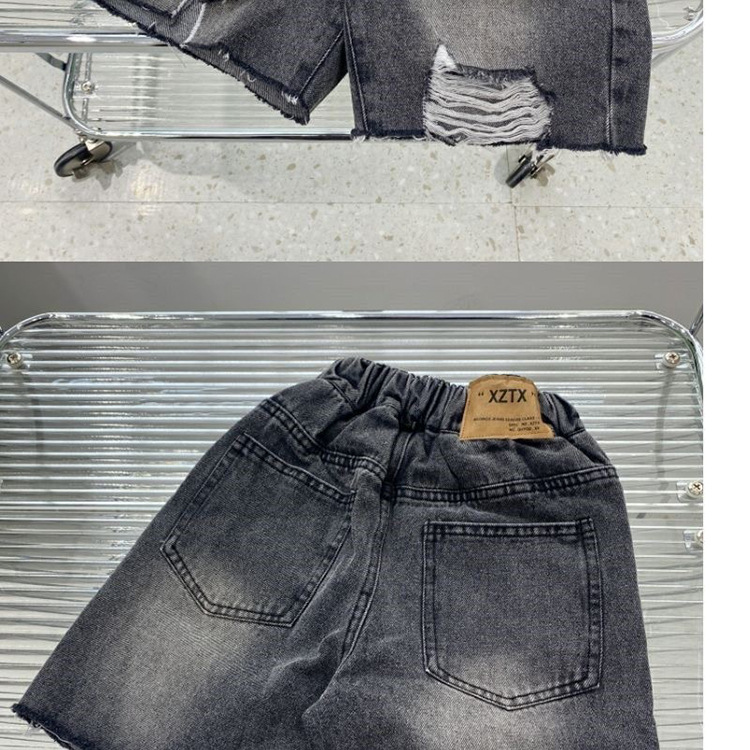 남자들의 찢어진 데님 반바지 여름 어린이 여름 옷 소년 다섯 번째 바지 트렌디 한 멋진 튀김 거리 유행 아기 바지스토어 가기