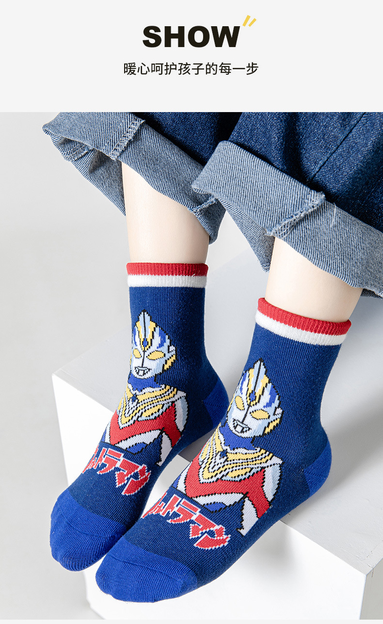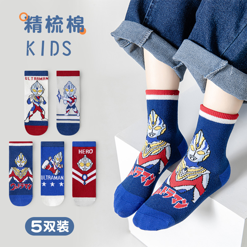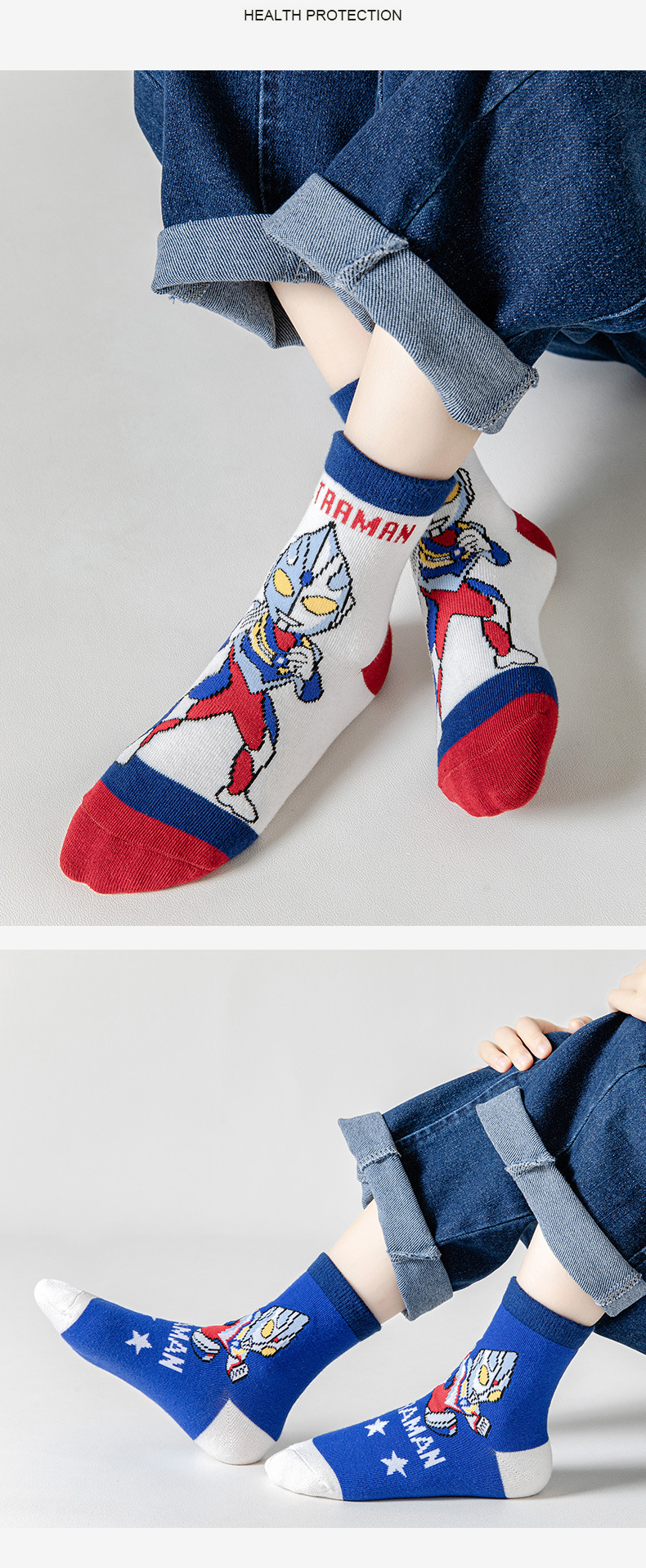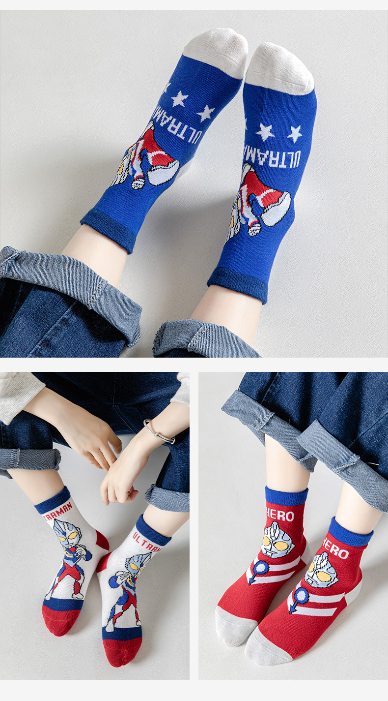 봄과 가을 새로운 어린이 양말 만화 우주 울트라 맨 전사 어린이 중반 송아지 양말 소년과 소녀 애니메이션 유행 양말스토어 가기