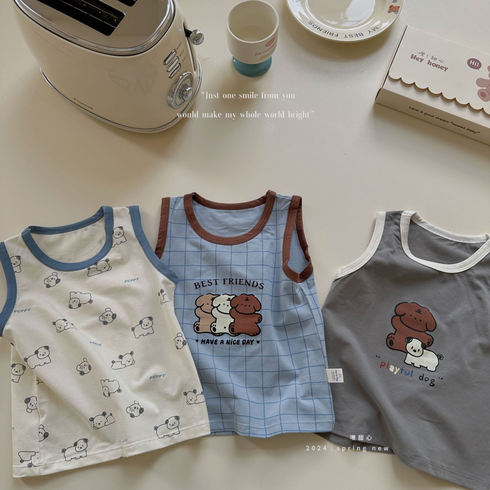재고 사이즈 롤 24 새로운 여름 어린이 라이크라 작은 조끼 3 피스 콤비네이션 아기 귀여운 만화 소년 소녀스토어 가기