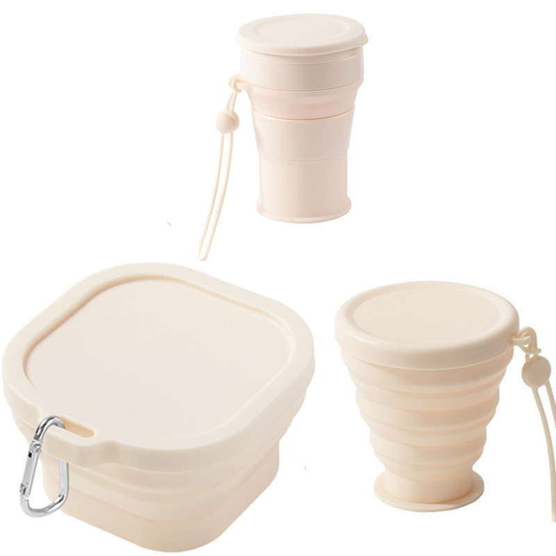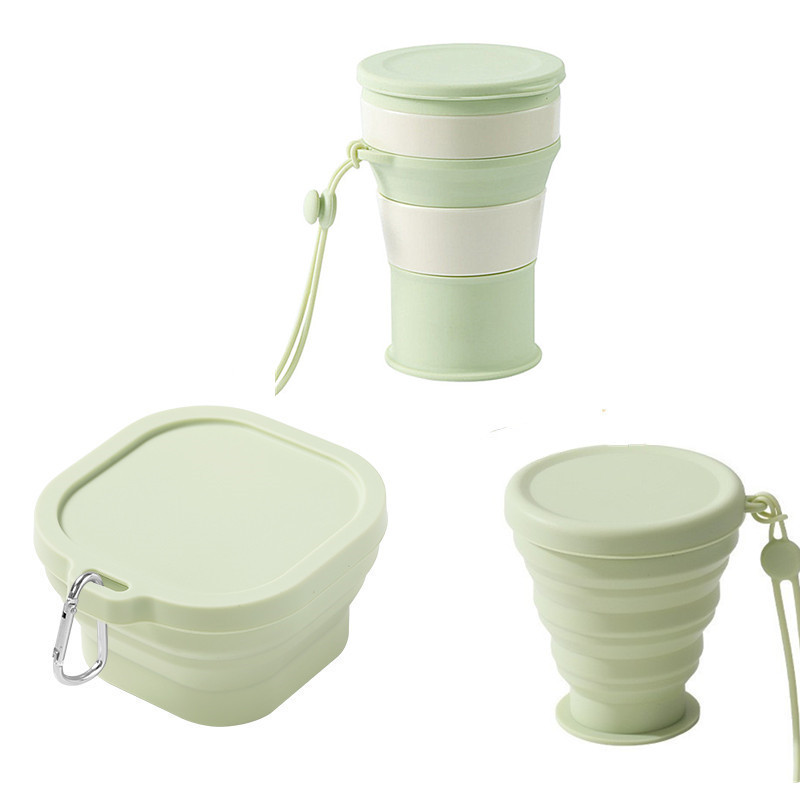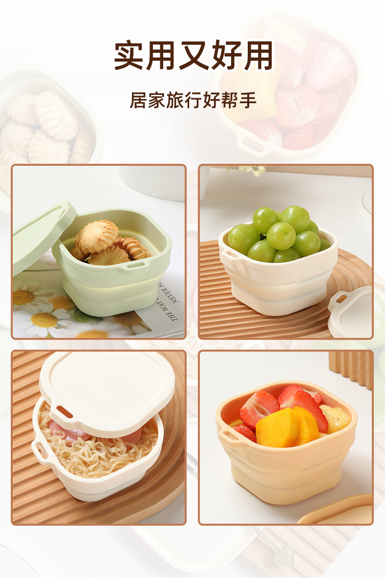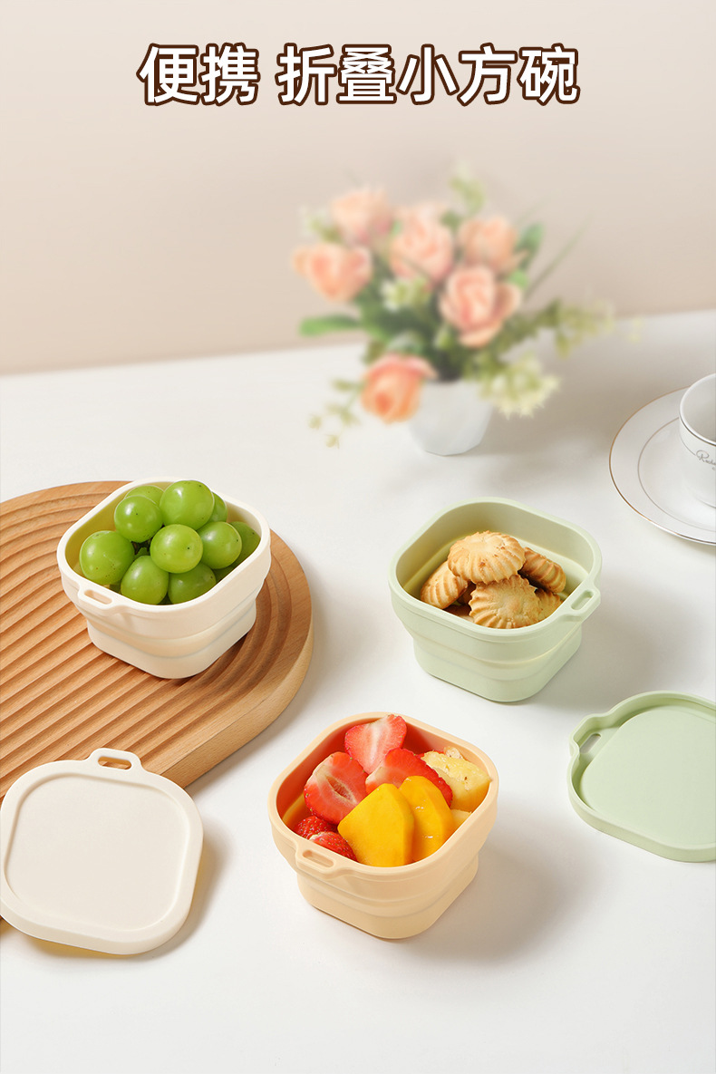 실리콘 접는 컵 크기 사각형 실리콘 접이식 그릇 야외 실리콘 접이식 여행 휴대용 3 피스 세트