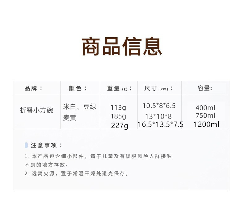 실리콘 접는 컵 크기 사각형 실리콘 접이식 그릇 야외 실리콘 접이식 여행 휴대용 3 피스 세트스토어 가기