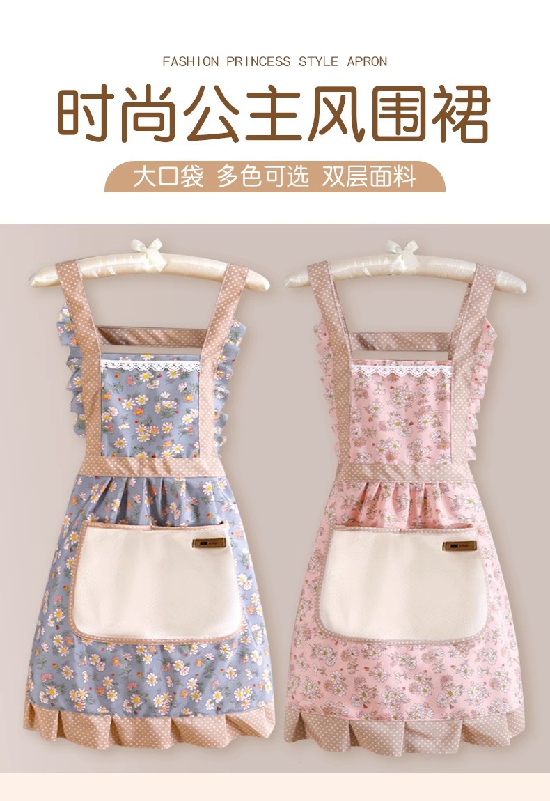 공주 앞치마 여성의 지울 수있는 핸드 스트랩 버클 가정용 주방 오일 방지 패브릭 케이터링 특수 허리 대형 포켓 턱받이