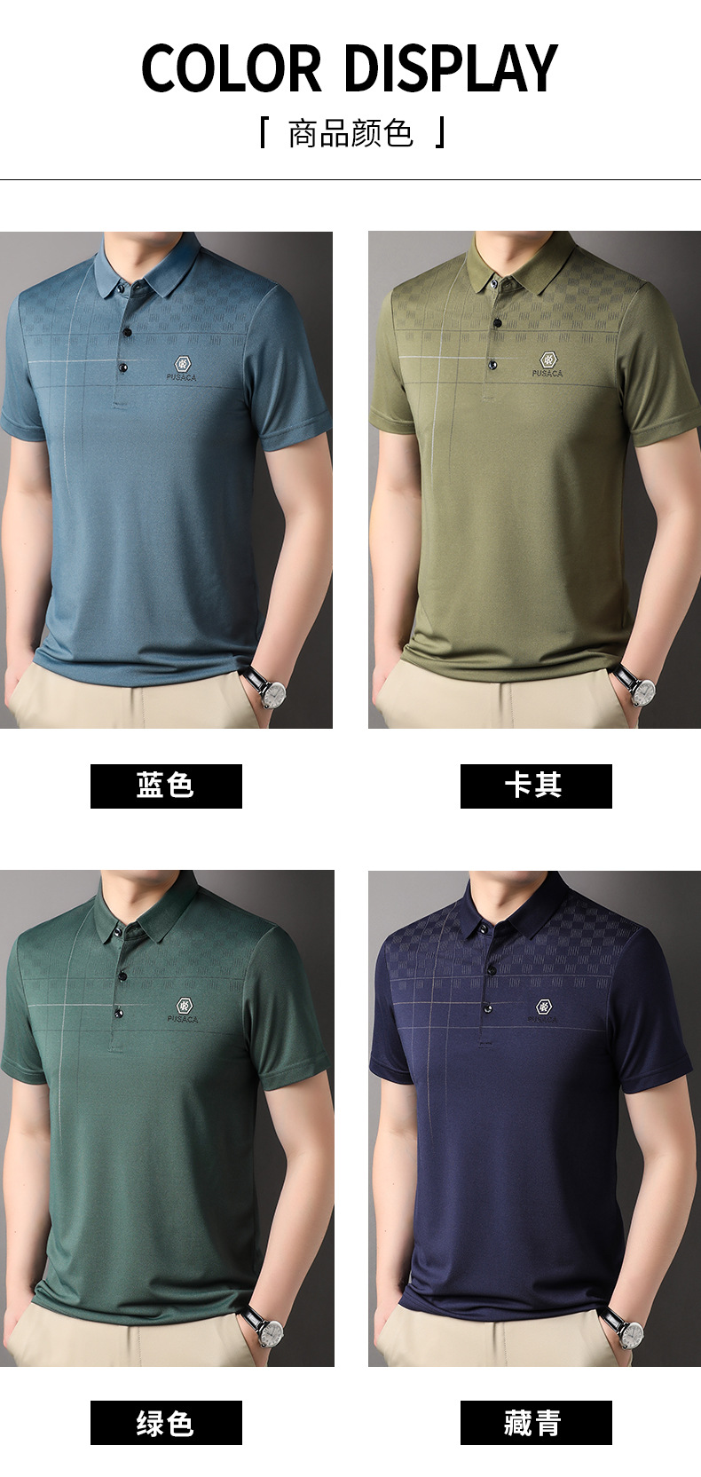 여름 2024 남성용 고급 면화 반팔 폴로 모조 다이아몬드 자카드 옷깃 탑 비즈니스 캐주얼 중년 및 젊은 티셔츠스토어 가기