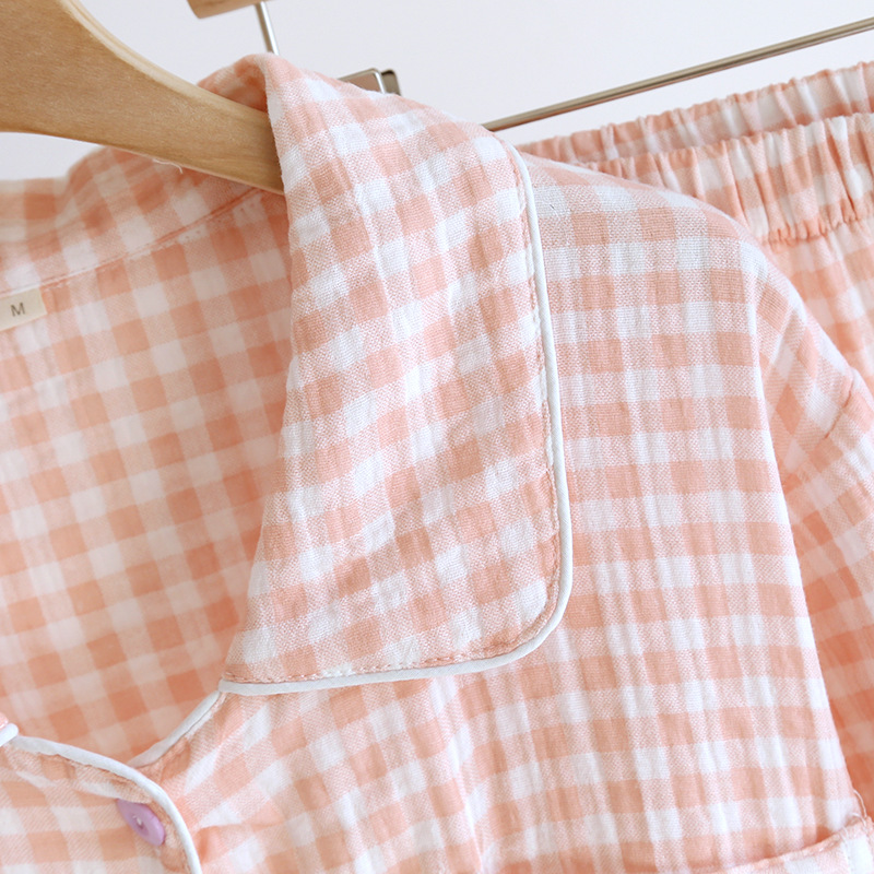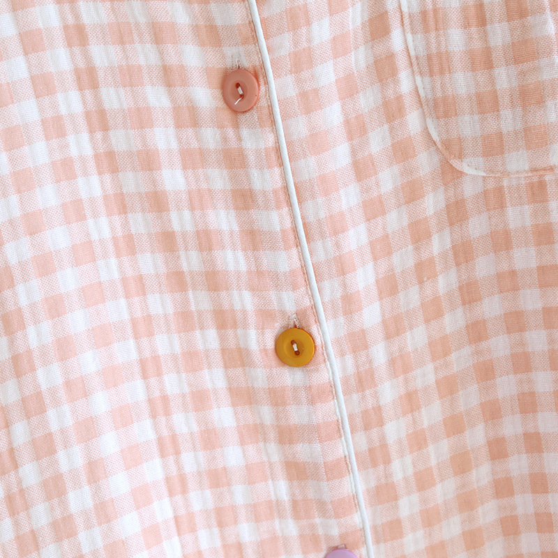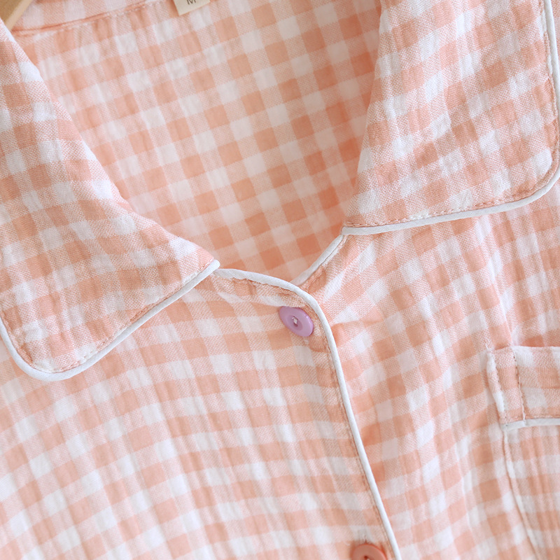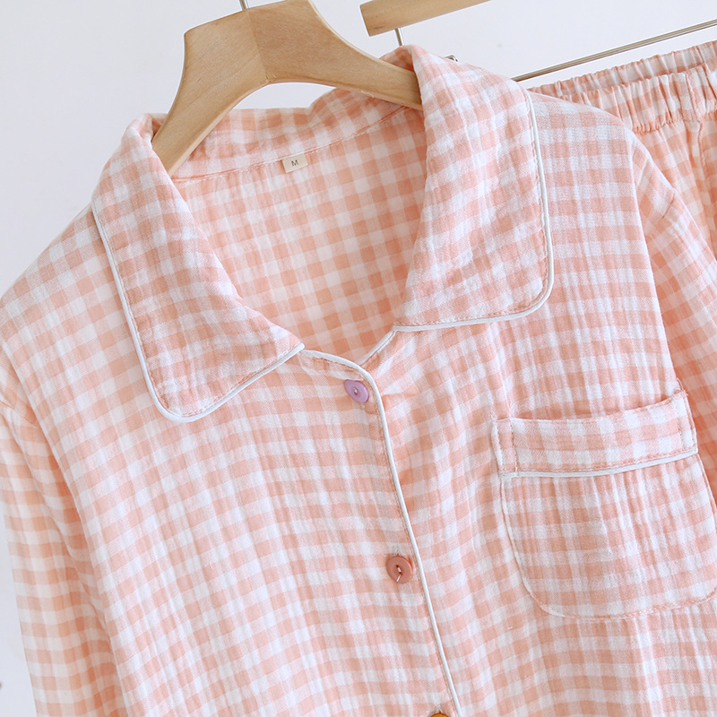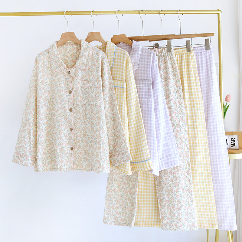 봄 및 가을 얇은 긴 소매 꽃 옷깃 여름 달콤한 가정복 잠옷 세트 면화 여성을위한 버블 코튼 원사 잠옷스토어 가기
