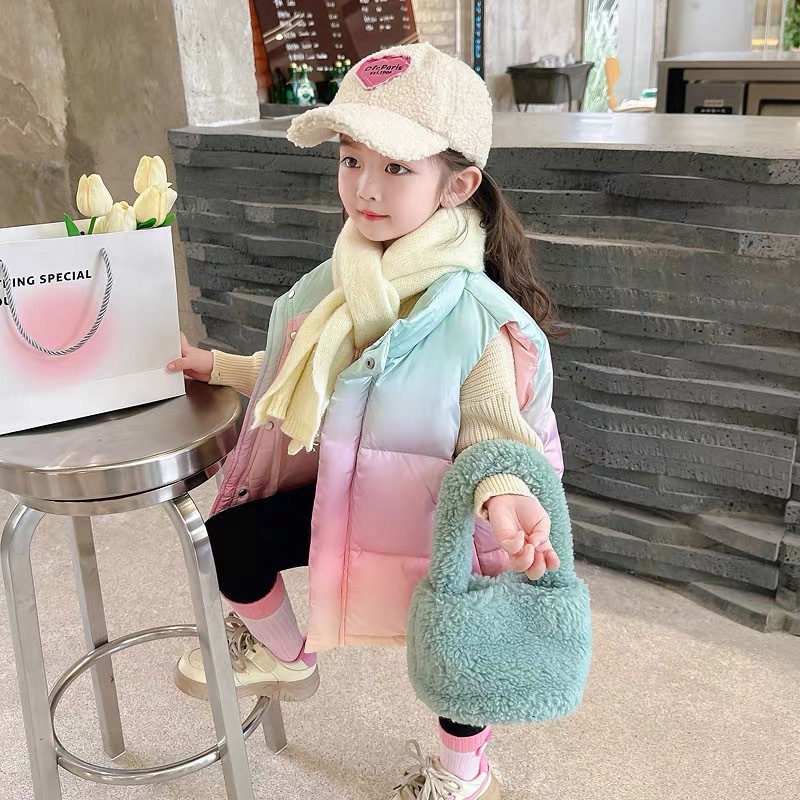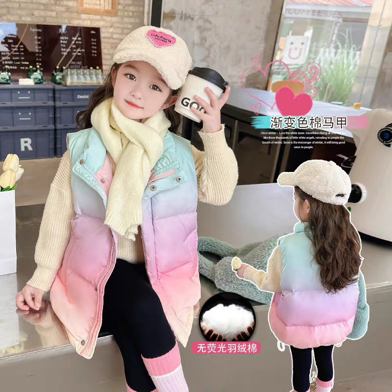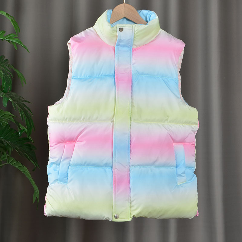 여자 레인보우 다운 코튼 조끼 봄, 가을 2024 새로운 어린이 겨울 소녀 따뜻한 양복 조끼 코튼스토어 가기