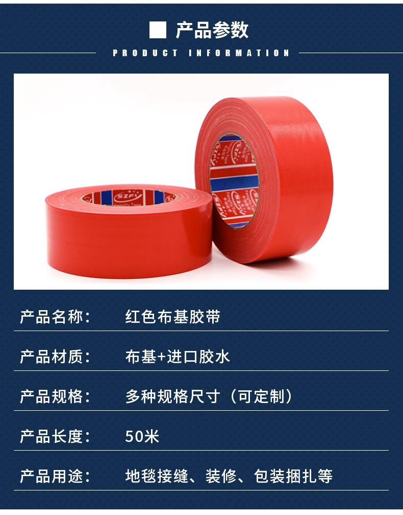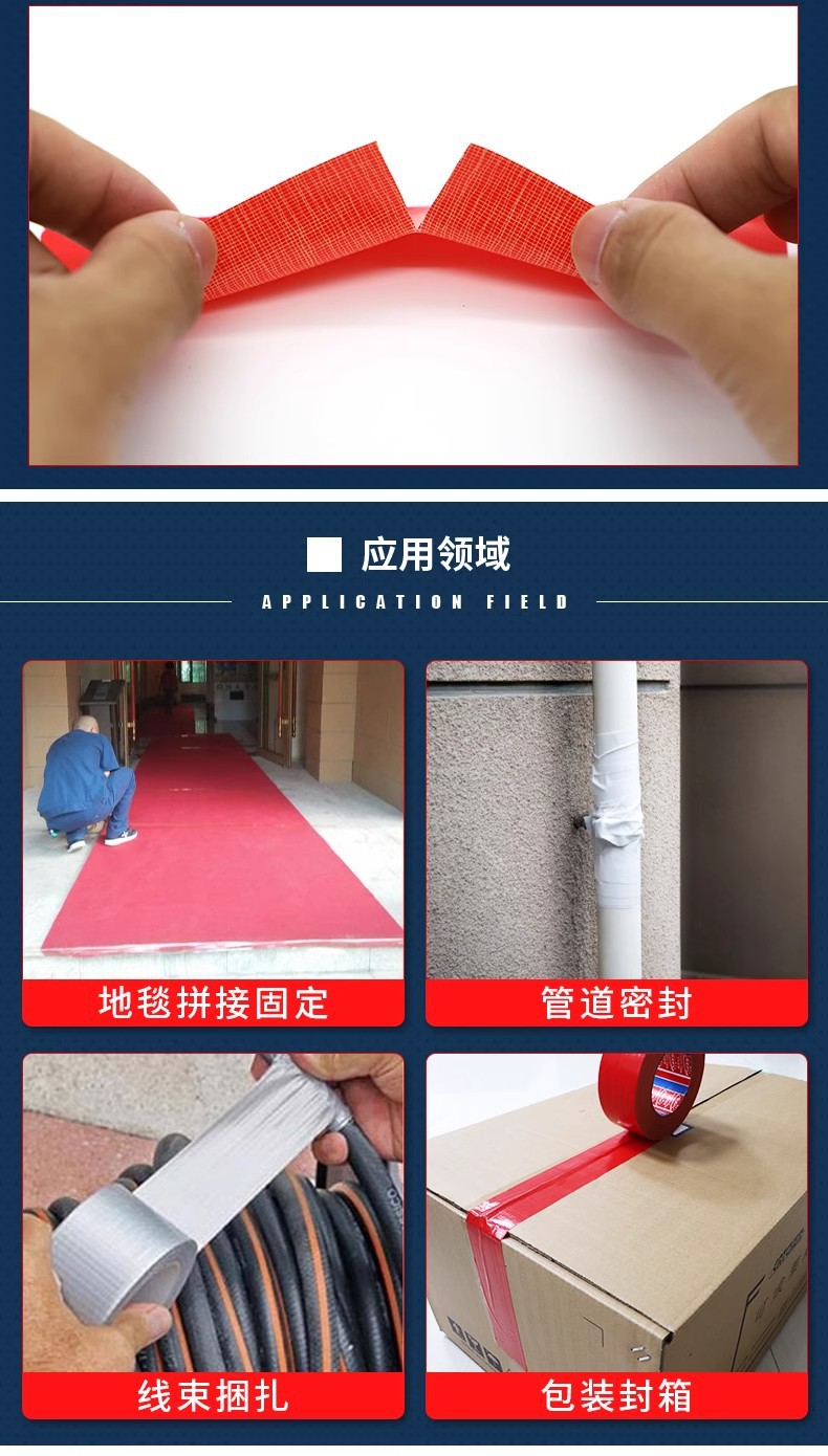 천 기반 테이프 도매 빨간색 단면 필름 테이프 결혼식 전시회 고점도 흔적없는 방수 및 내마모성 카펫 테이프스토어 가기