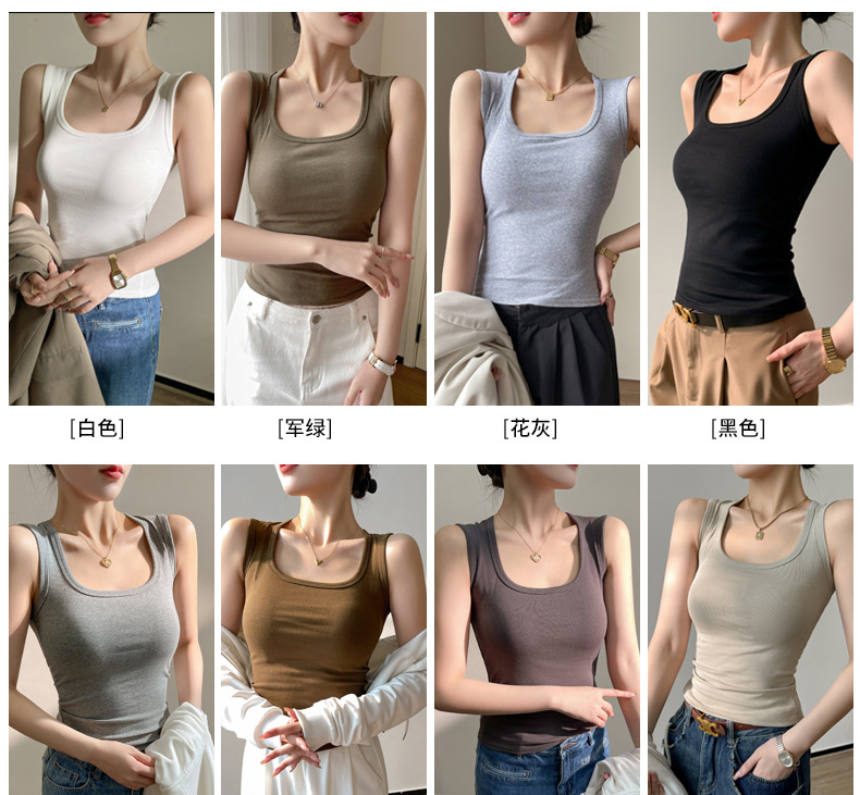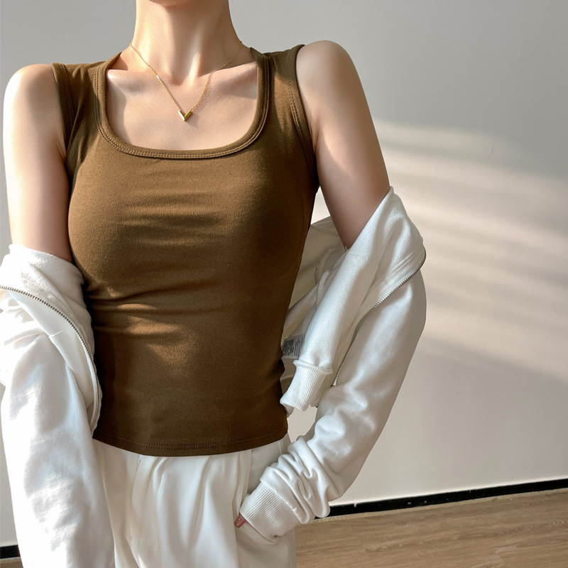 봄, 여름, 가을을위한 작은 조끼 여성용 슬링 화이트 슬림 핏 가슴으로 덮인 스파이스 걸 탑 면화 니트 베이스 세트스토어 가기