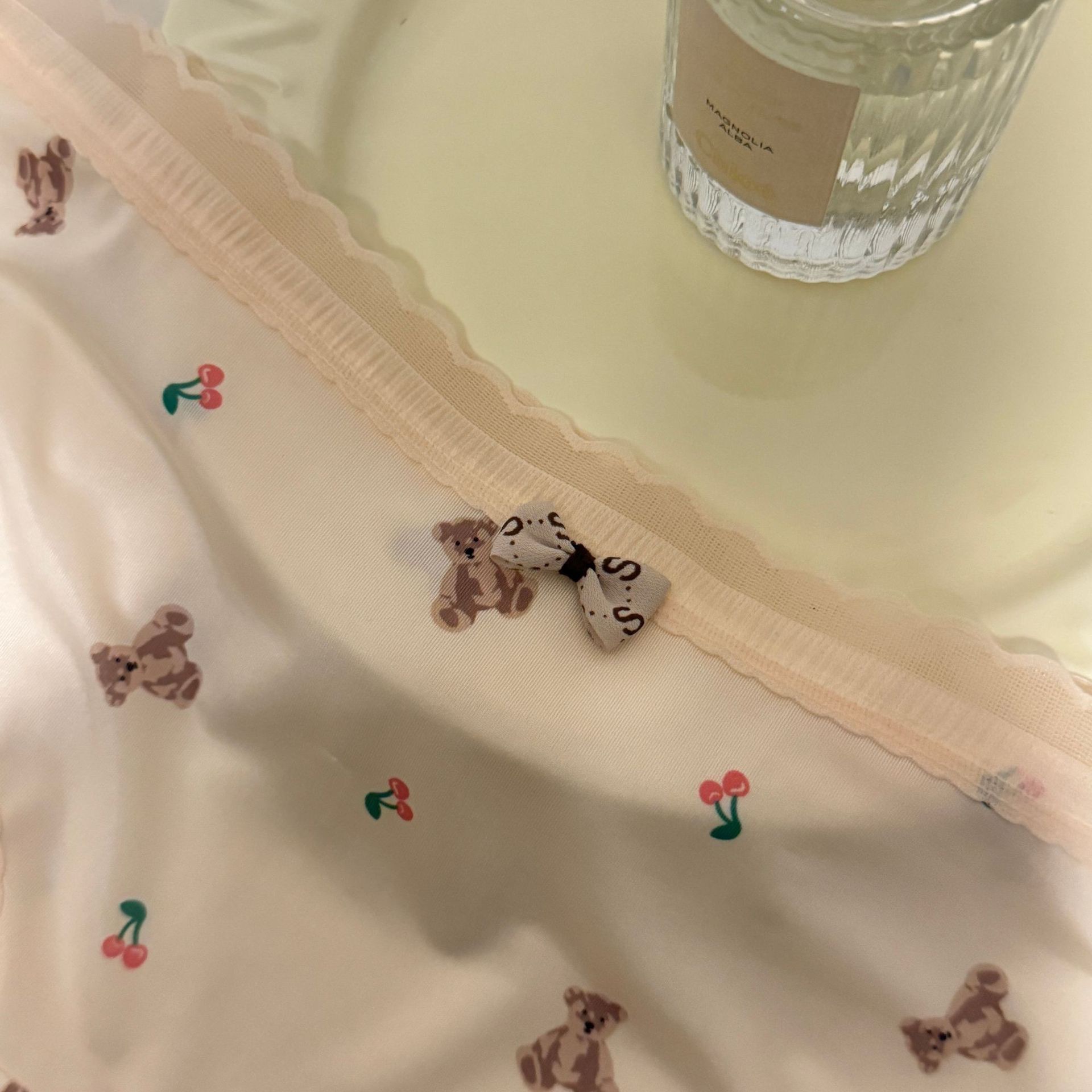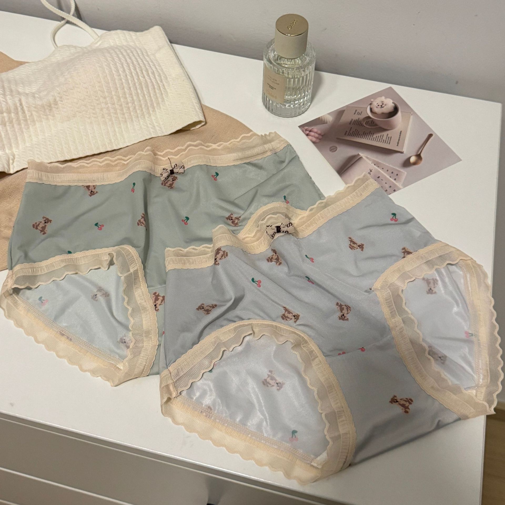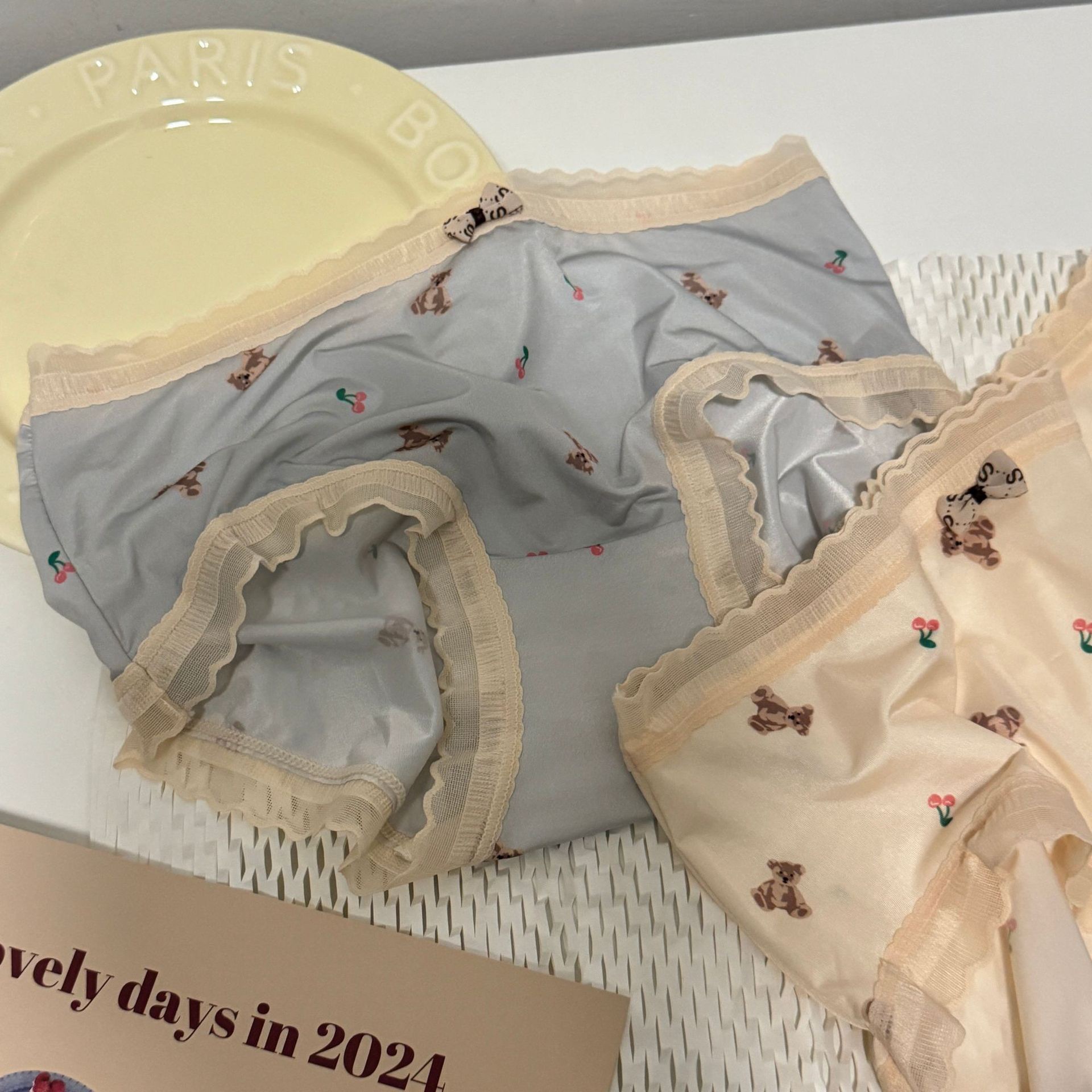 울트라 얇은 누드 아이스 실크 속옷 여성의 중간 허리 달콤한 곰 인쇄 소녀의 통기성 항균면 가랑이 브리프