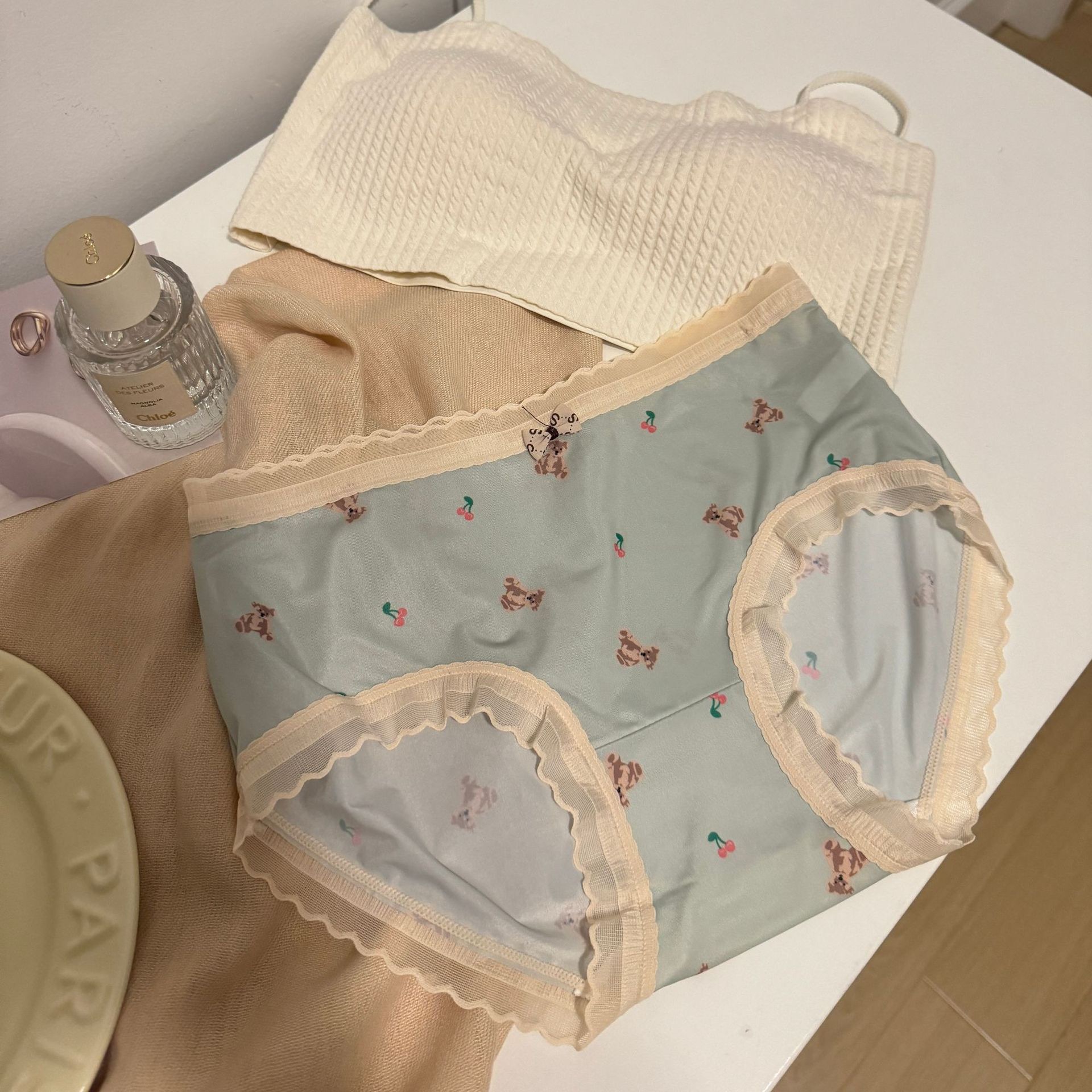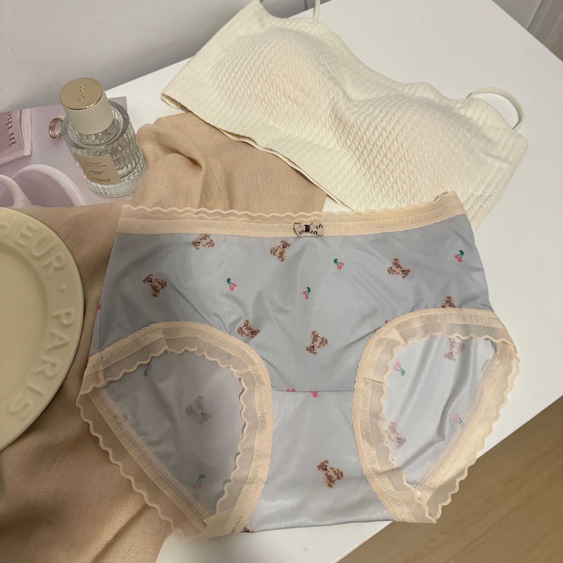 울트라 얇은 누드 아이스 실크 속옷 여성의 중간 허리 달콤한 곰 인쇄 소녀의 통기성 항균면 가랑이 브리프스토어 가기