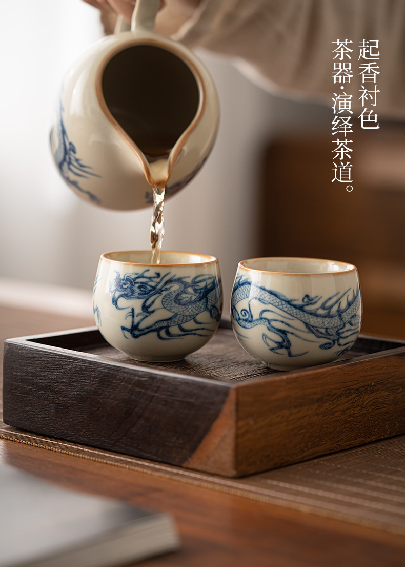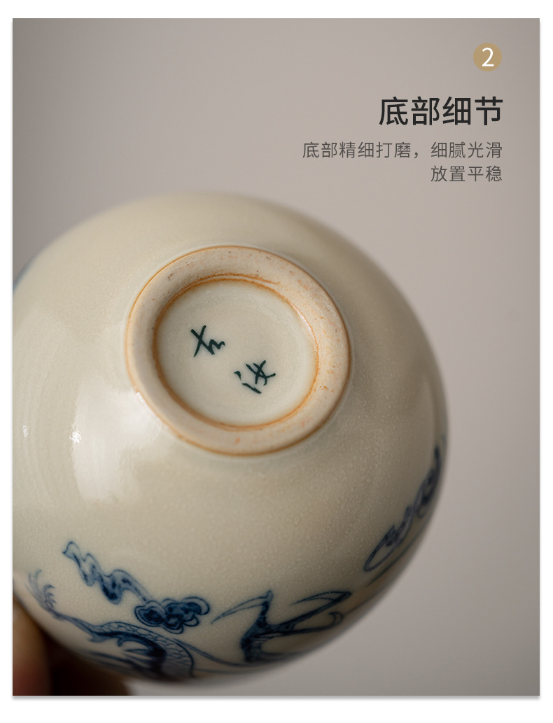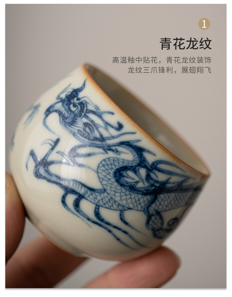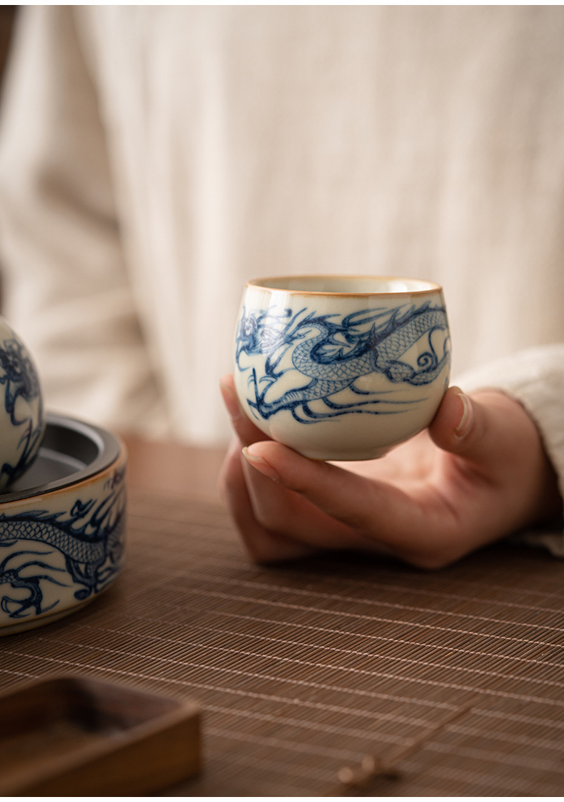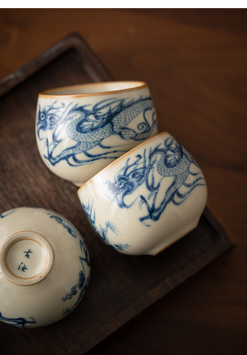 Ru Kiln 파란색과 흰색 용 패턴 티 컵 남자 마스터 컵 가정용 싱글 컵 개인 전용 차 세트 차 차 컵 차 컵 차 컵 차 컵 차 컵 차 컵 차 컵 차 컵 차 컵