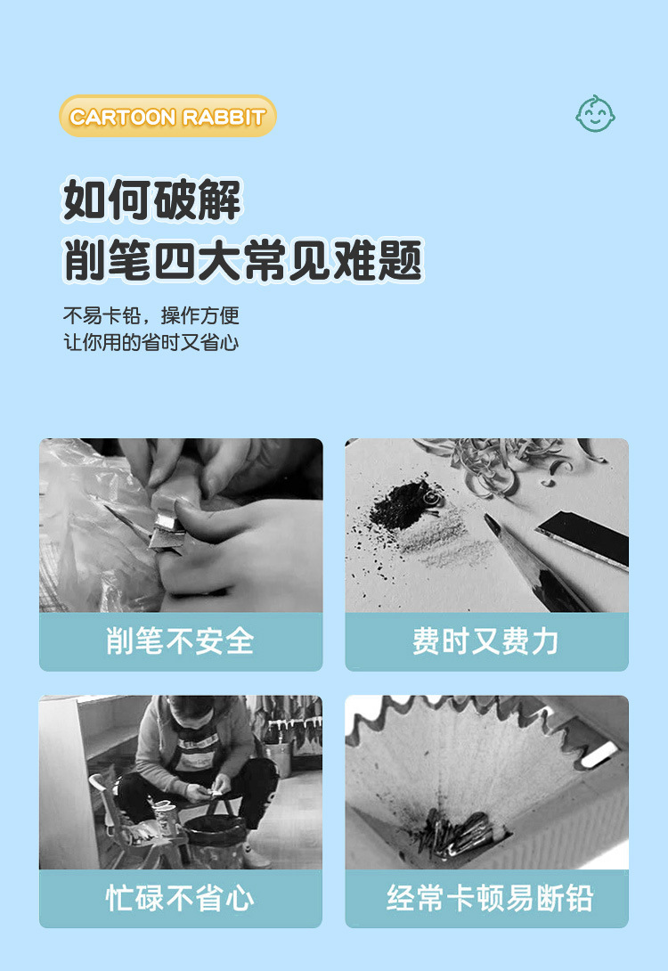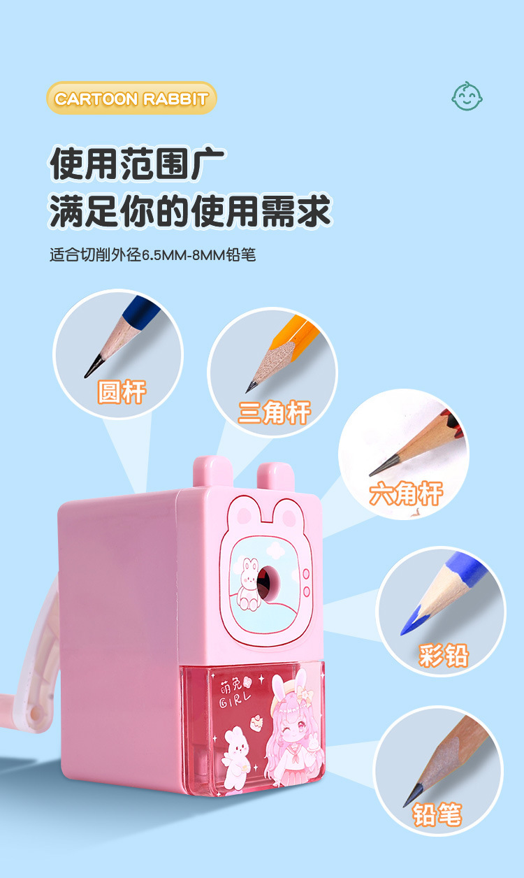학생 만화 연필 깎기 손으로 자동 리드 연필 깎기 노동 절약 단일 구멍 연필 깎기 문구 용품 도매