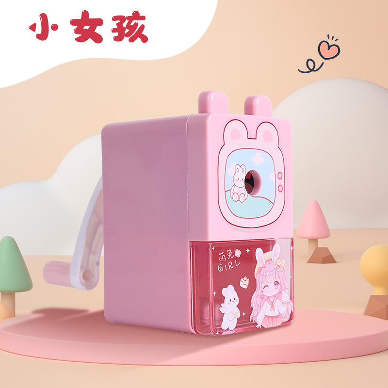 학생 만화 연필 깎기 손으로 자동 리드 연필 깎기 노동 절약 단일 구멍 연필 깎기 문구 용품 도매스토어 가기