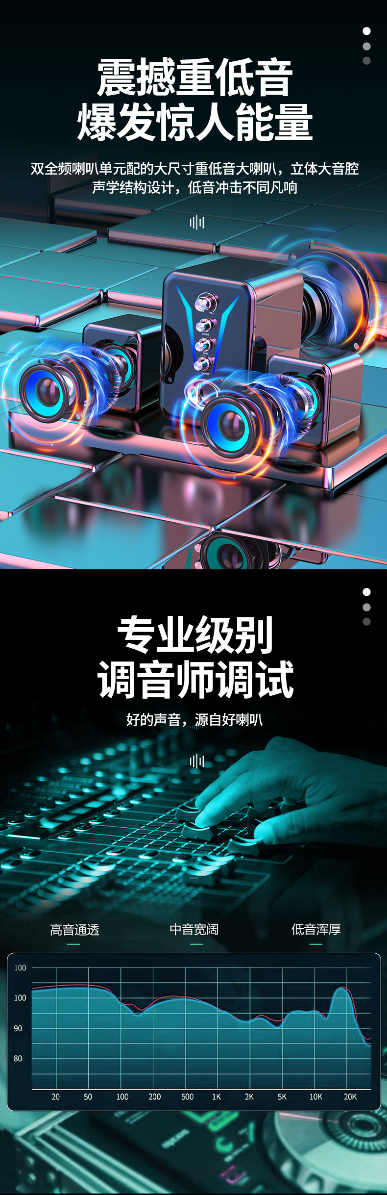 오디오 컴퓨터 데스크탑 가정용 블루투스 소형 스피커 서브우퍼 고품질 대용량 IPX7