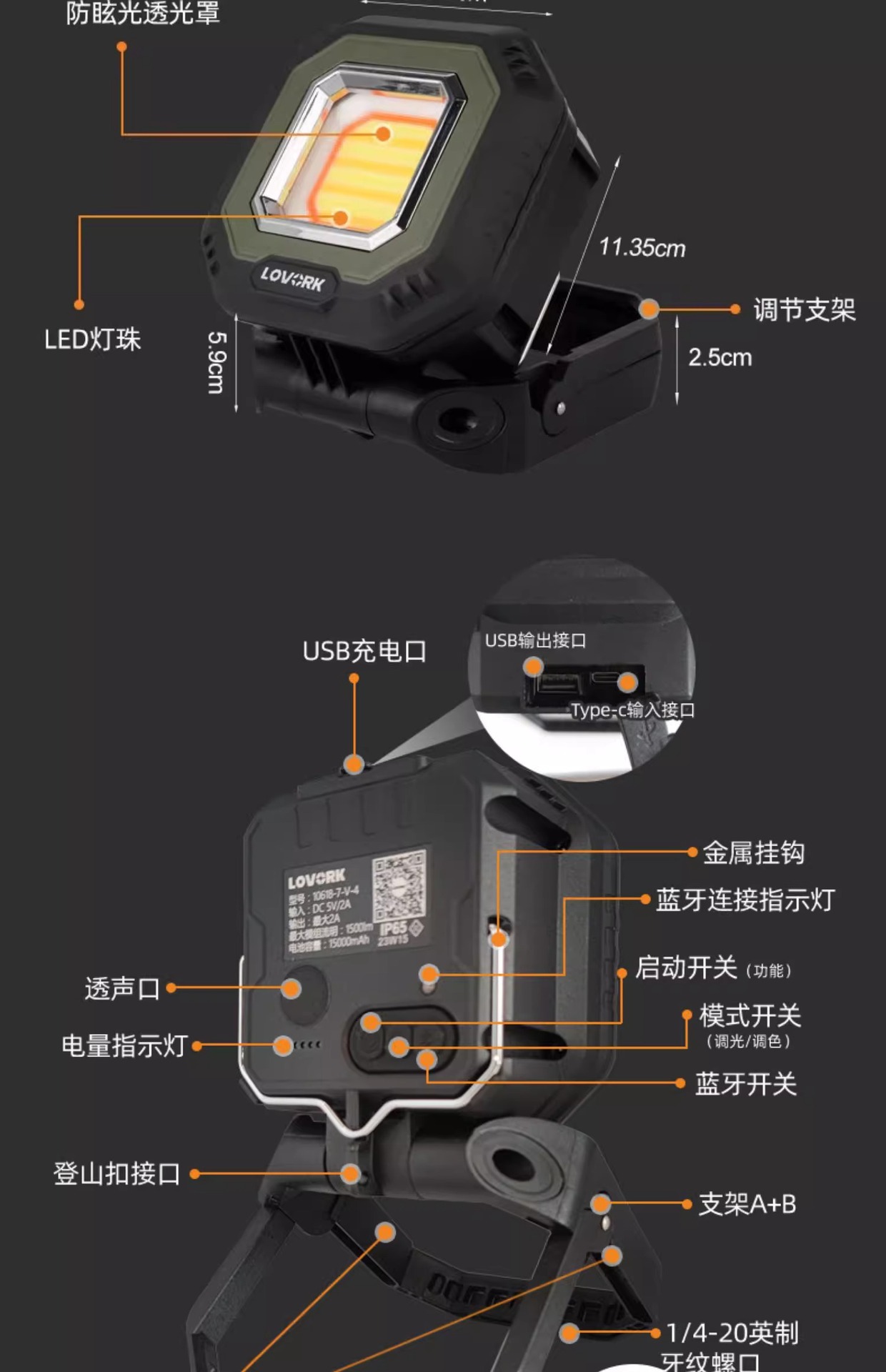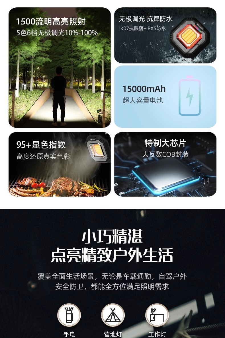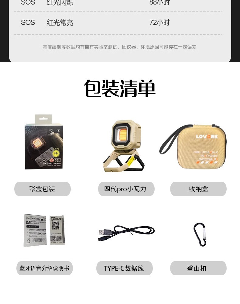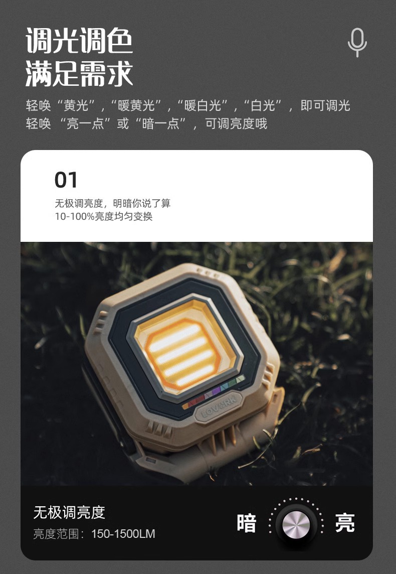 Lewoke 작은 Waili 4 세대 퀵 샌드 골드 스마트 캠핑 라이트 캠핑 라이트 충전식 야외 조명 텐트 라이트스토어 가기