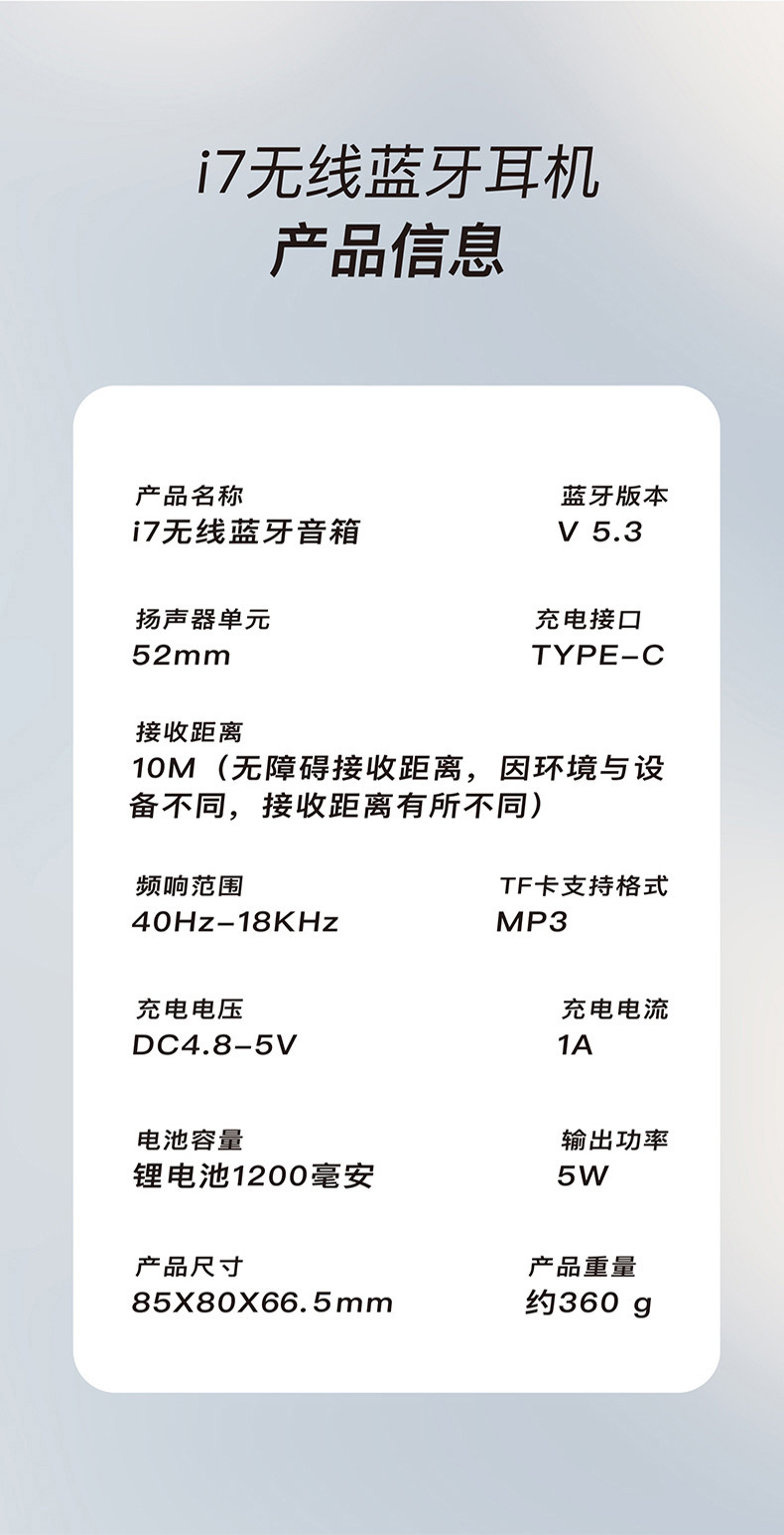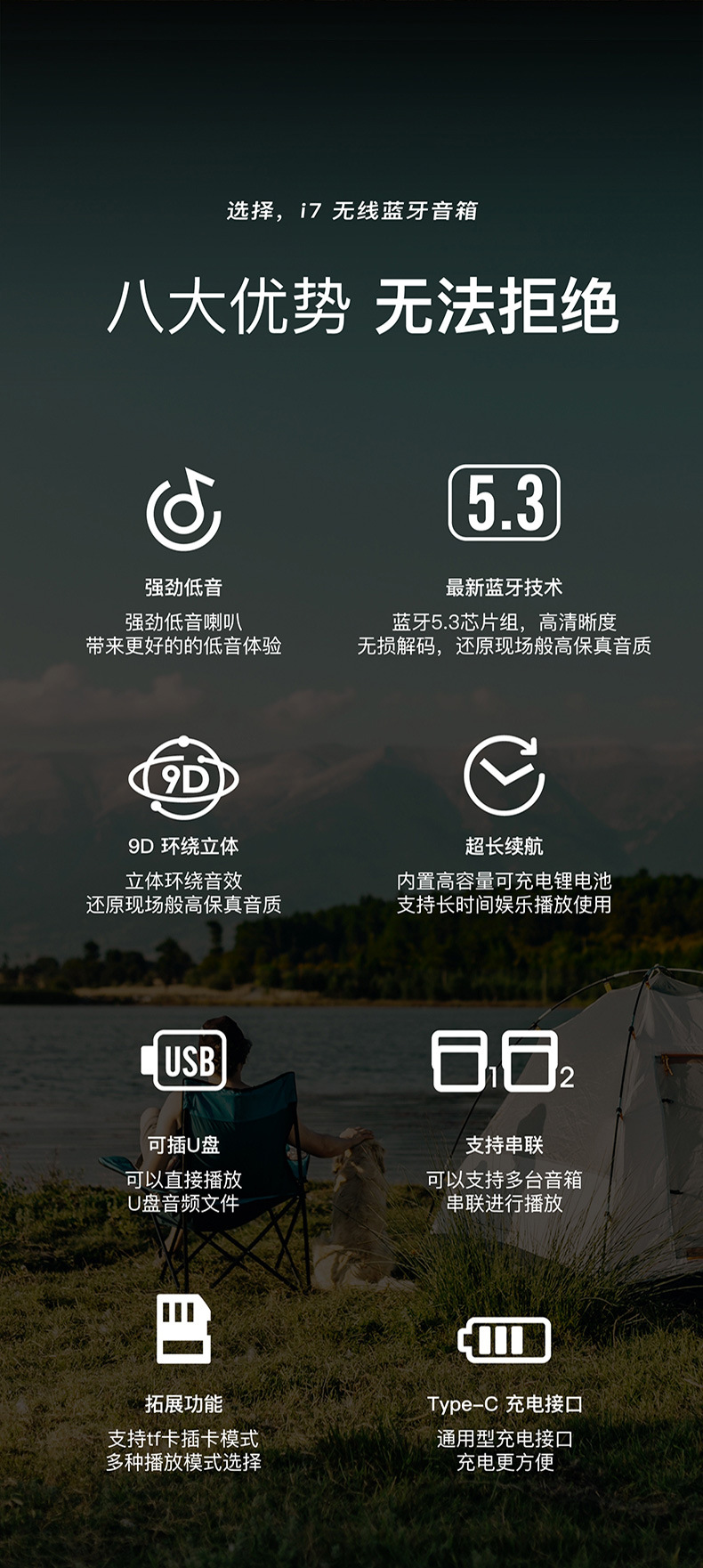 세일레란스 미니 아웃도어 데스크탑 무선 블루투스 스피커 i7 스테레오