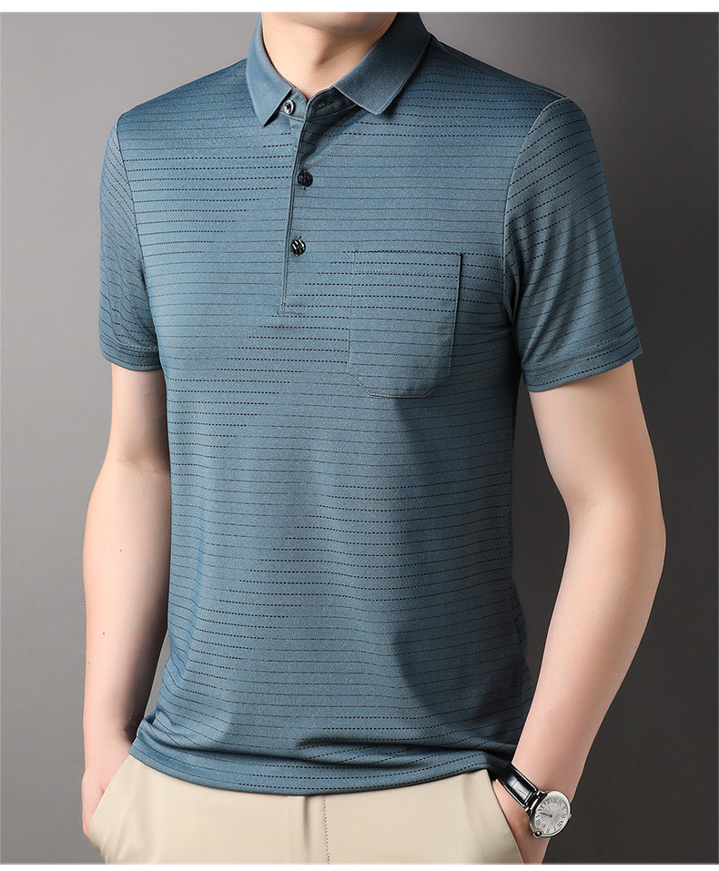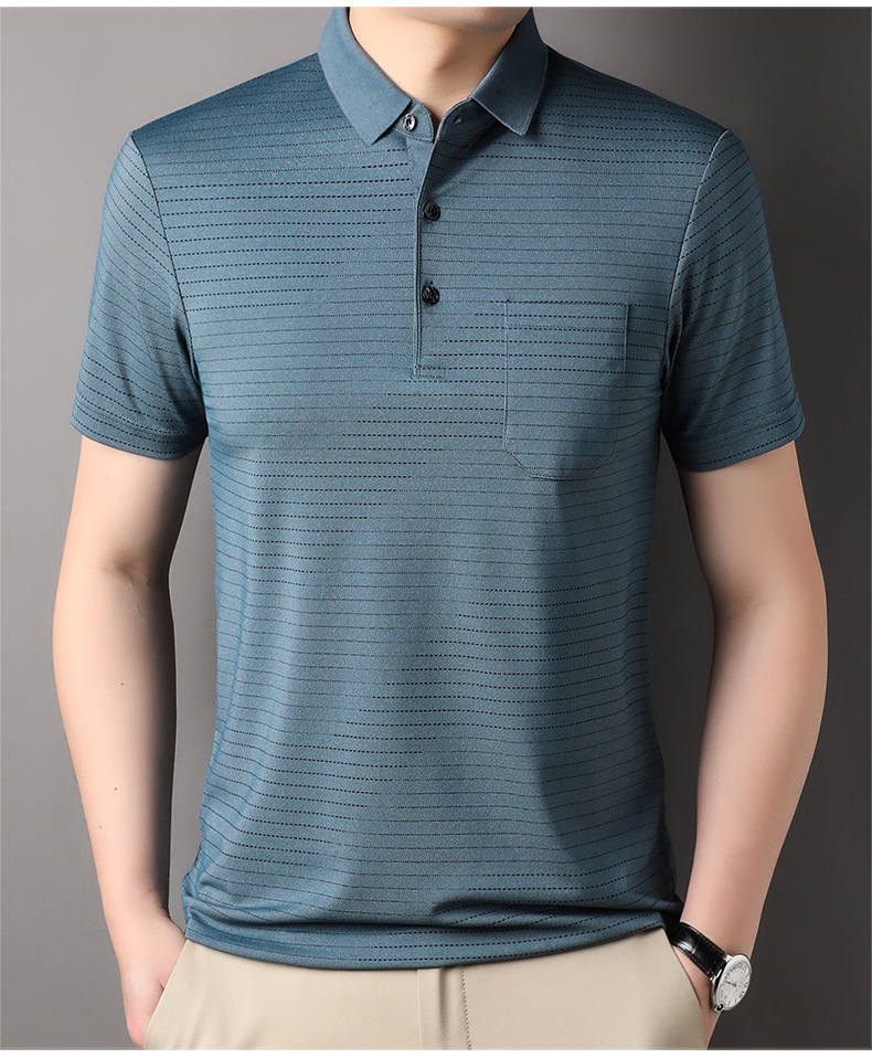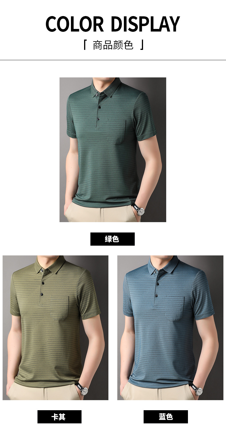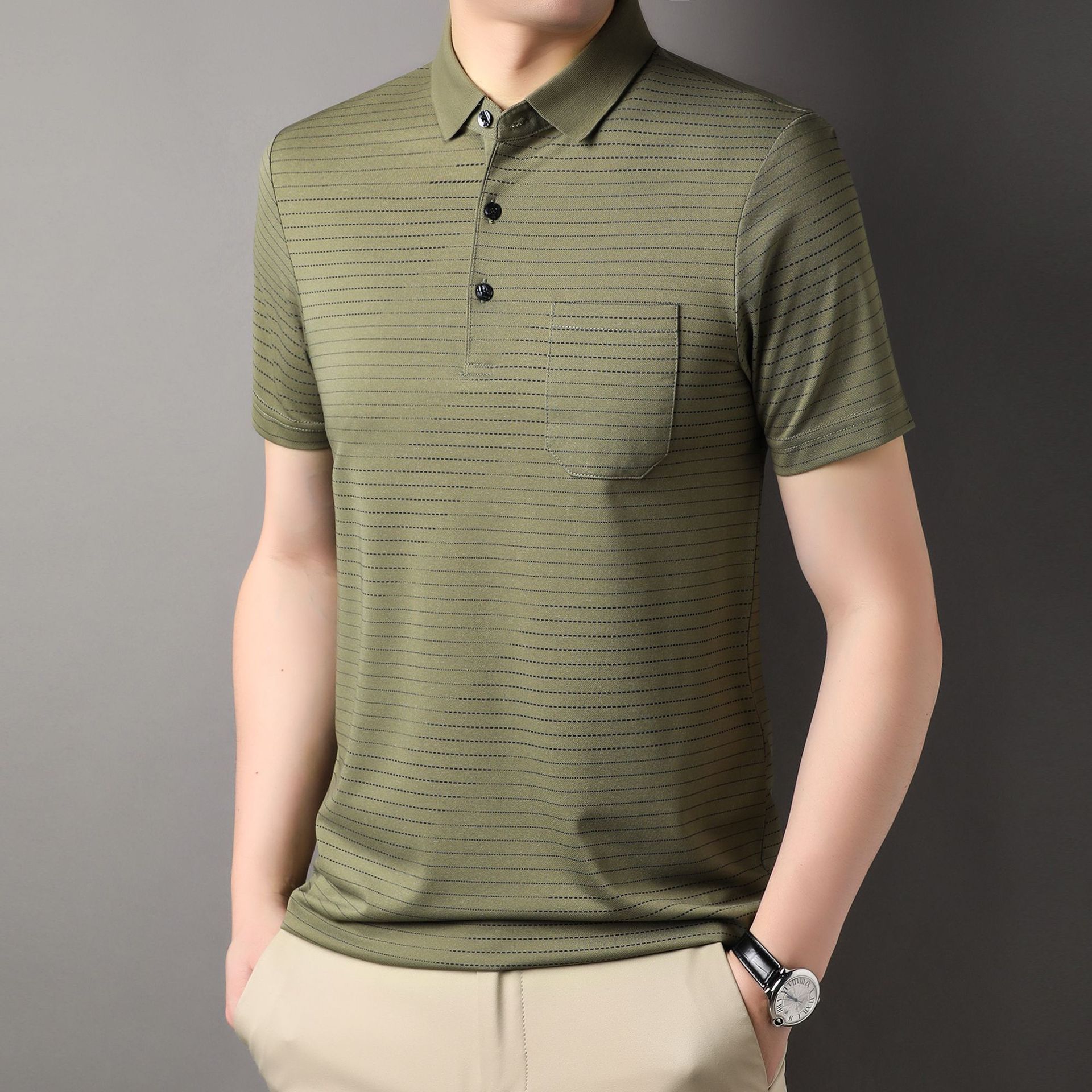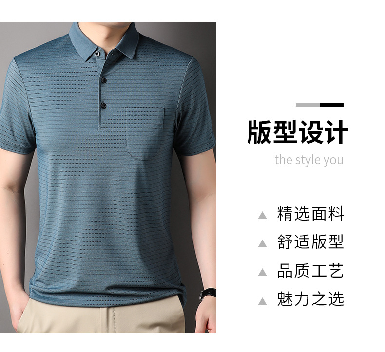 2024 여름 남자 하이 엔드 반팔면 폴로 스트라이프 자카드 옷깃 탑 비즈니스 캐주얼 젊은 및 중년 티셔츠