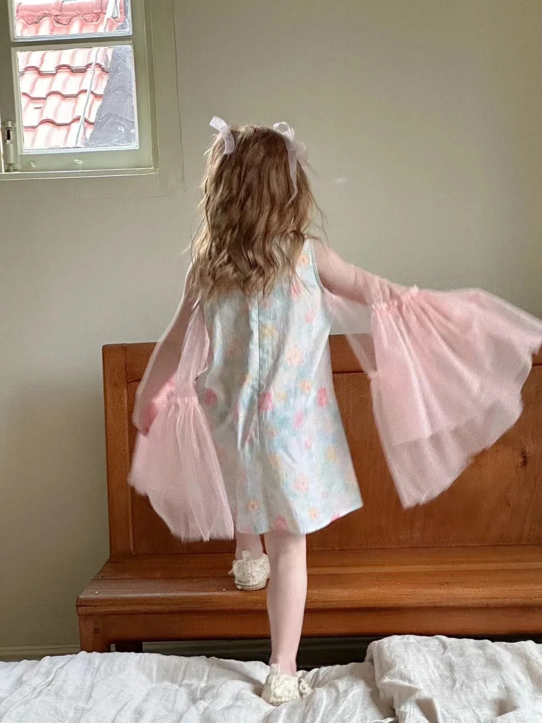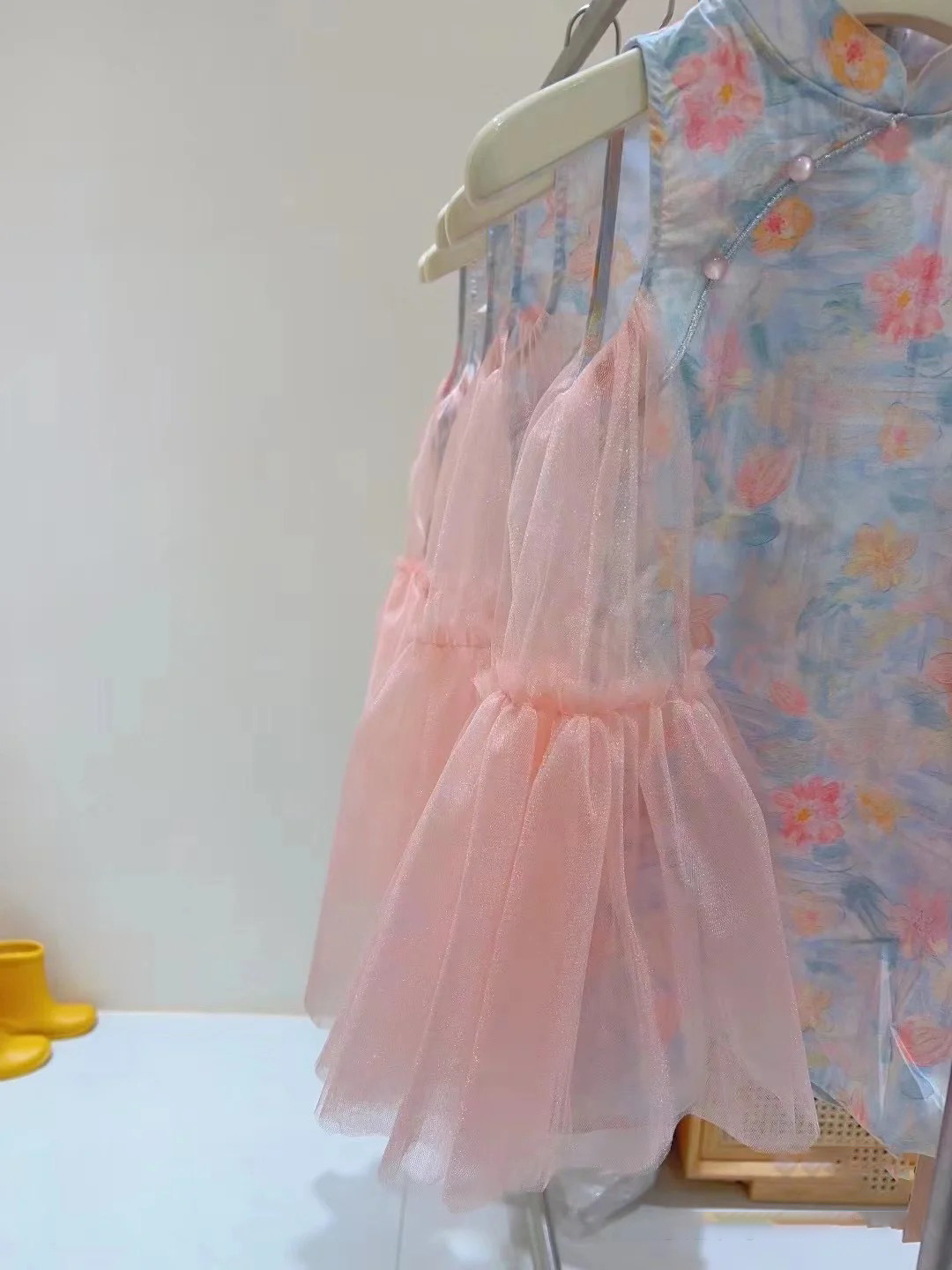 소녀 원피스 2024 여름 새 소녀 중국 치파오 거즈 원피스 중소 어린이를위한 세련된 조끼 원피스스토어 가기
