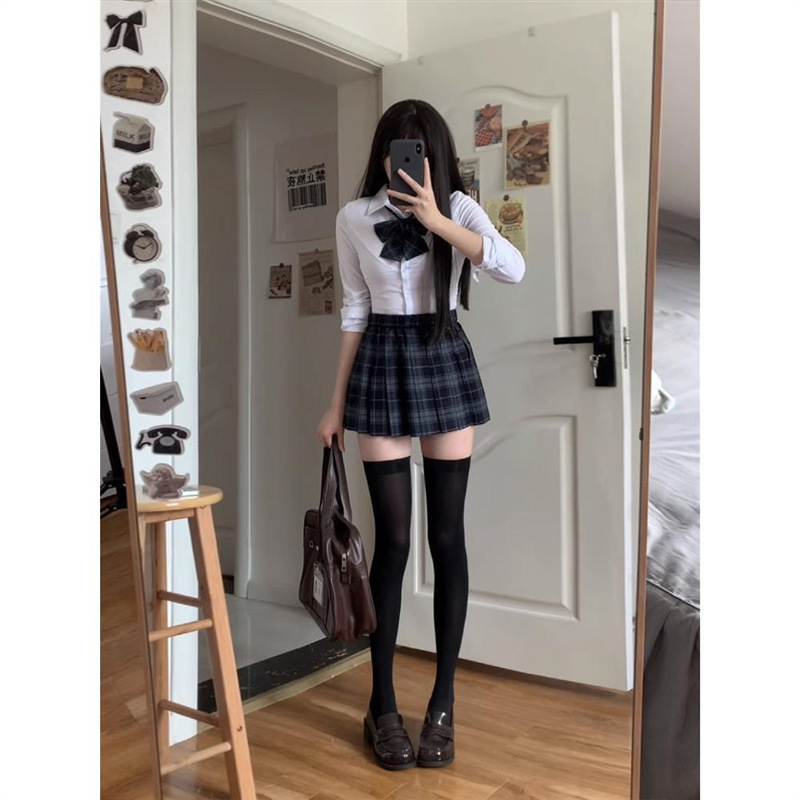 원래 jk 유니폼 스커트 진짜 높은 허리 주름 치마 여성 개 짧은 슈지 스커트 순수한 욕망 바람 허리 꽉 셔츠 세트 가을과 겨울