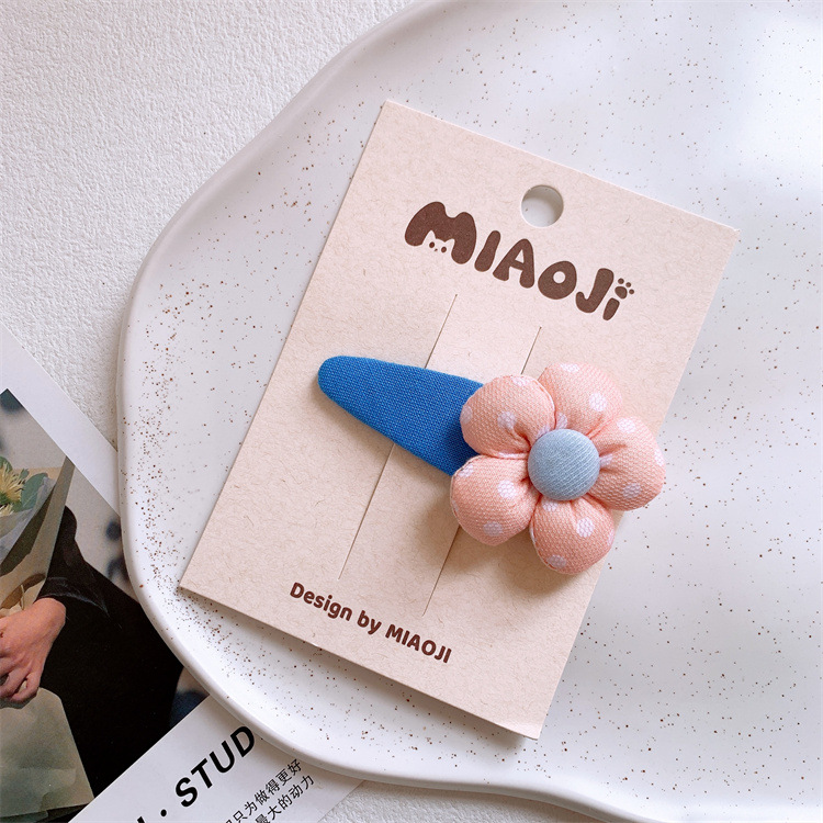 새로운 어린이 원단 폴카 도트 꽃 머리핀 귀여운 소녀 앞머리 측면 부러진 머리 BB 클립 아기 쌍 머리핀