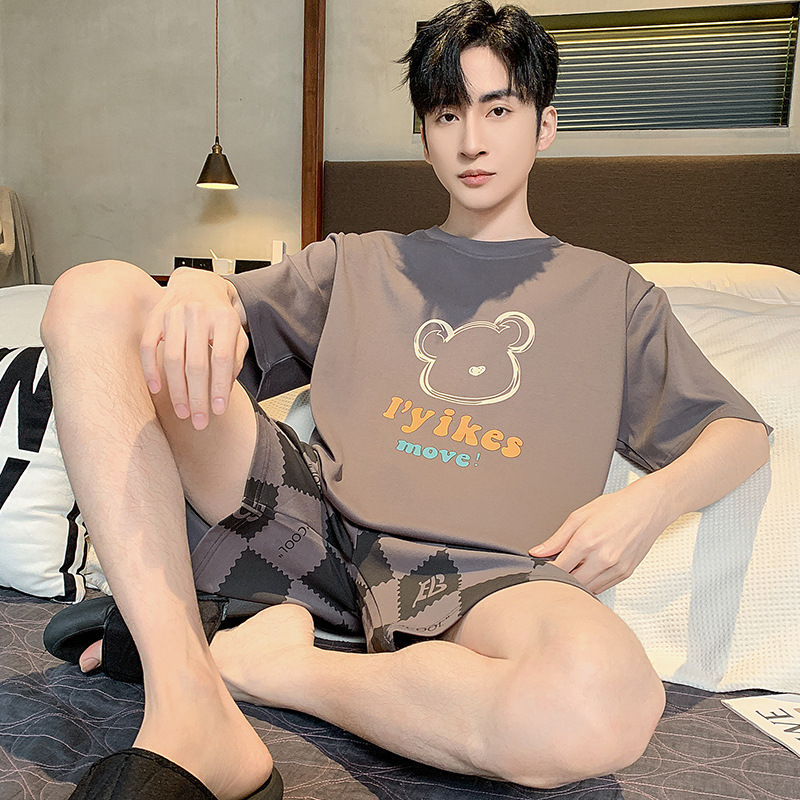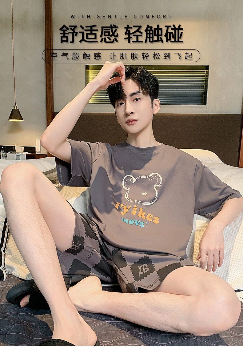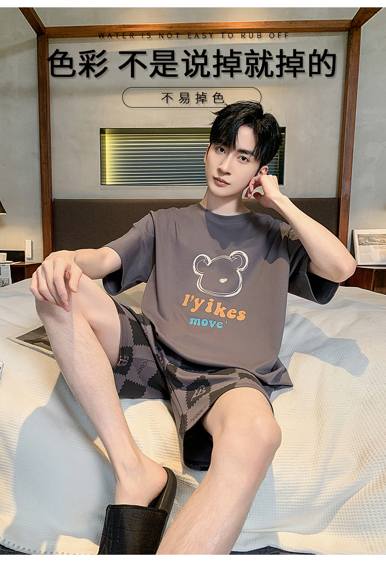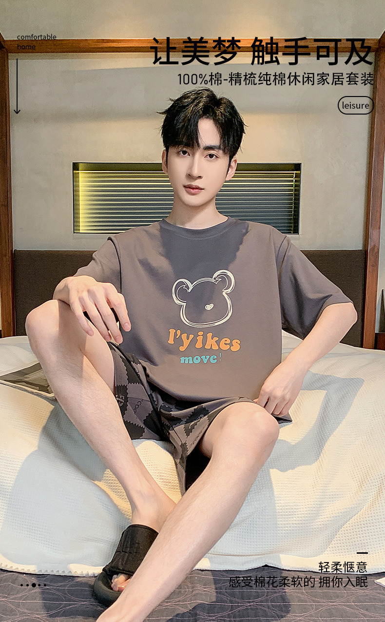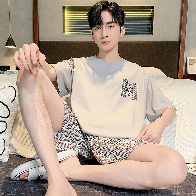 남성용 잠옷 봄과 여름 코튼 반팔 2024 뉴 유스 보이즈 스타일은 플러스 사이즈 홈웨어 밖에서 착용 할 수 있습니다.스토어 가기