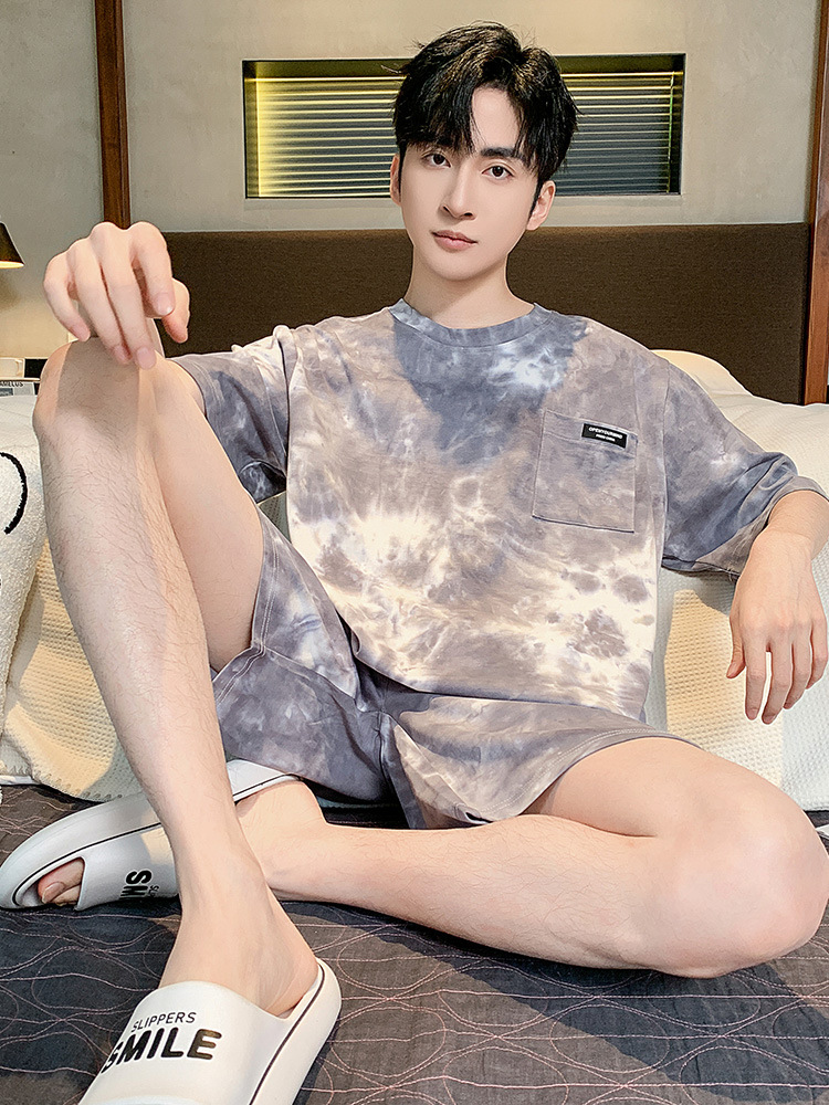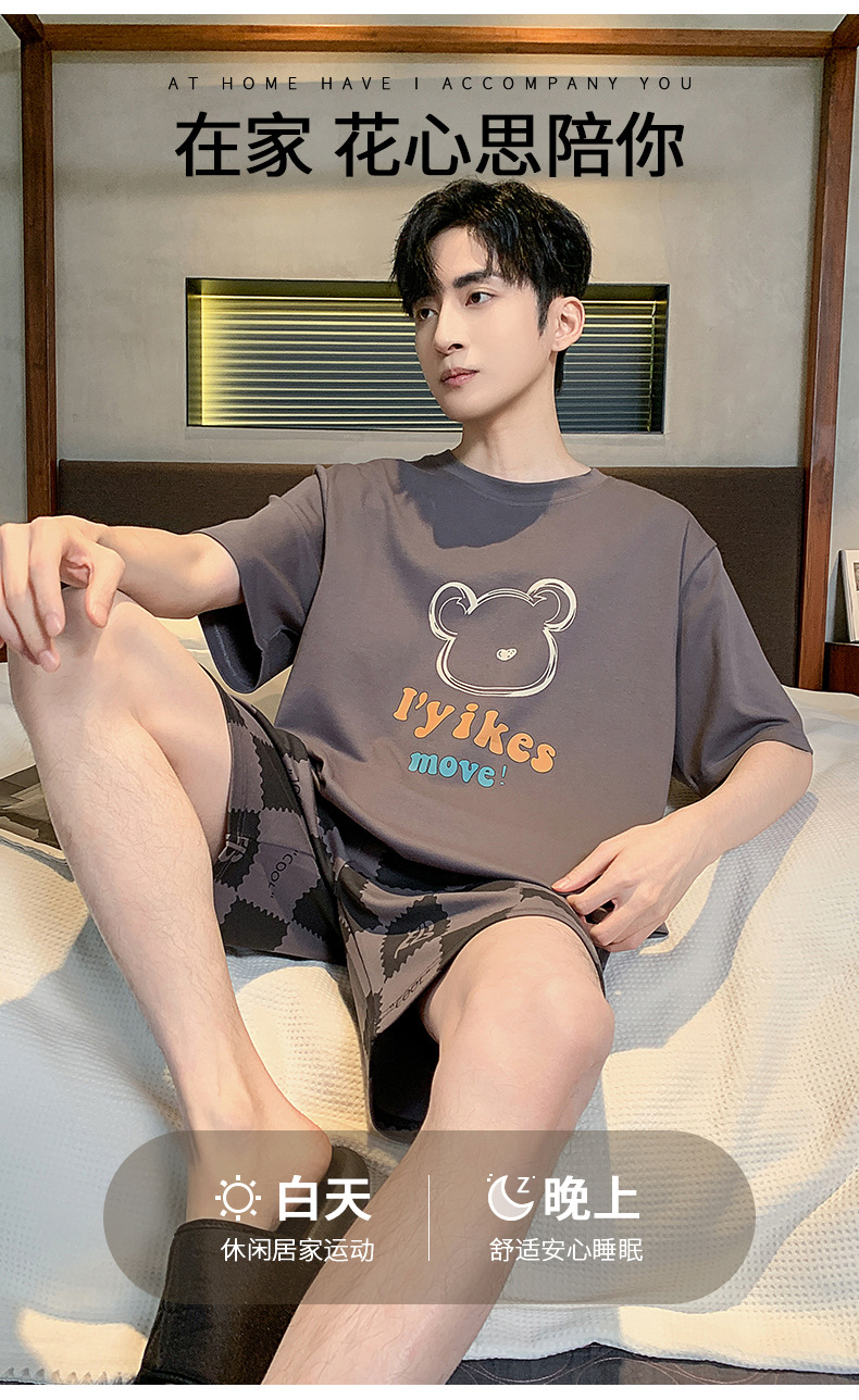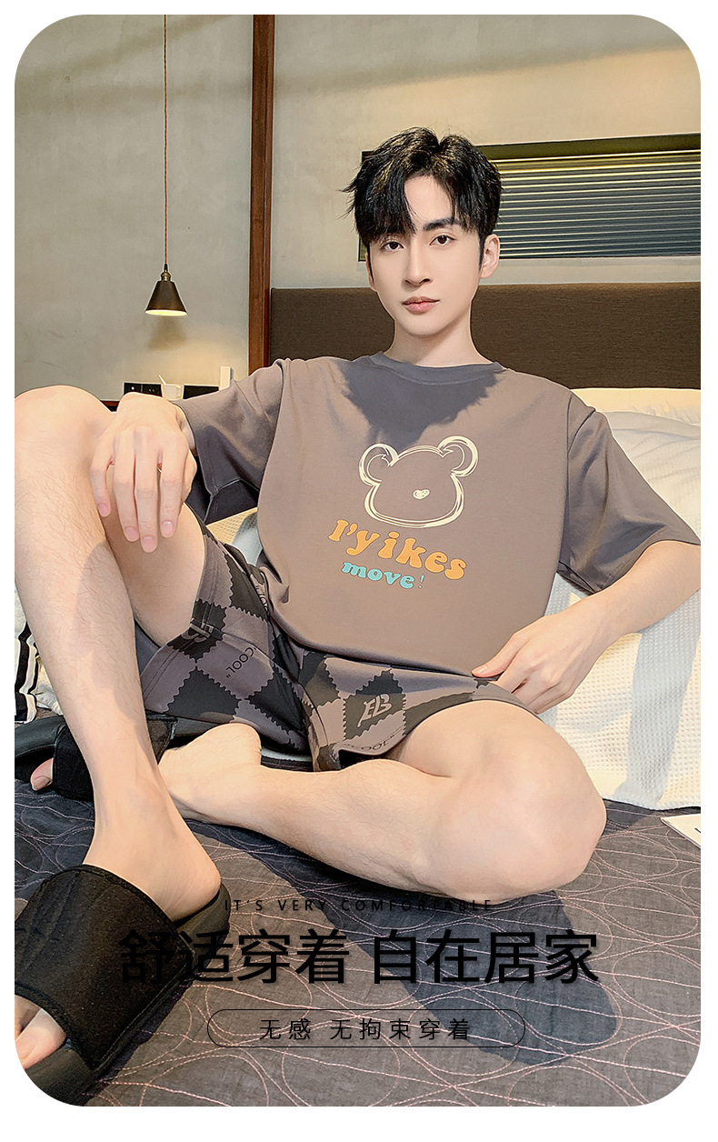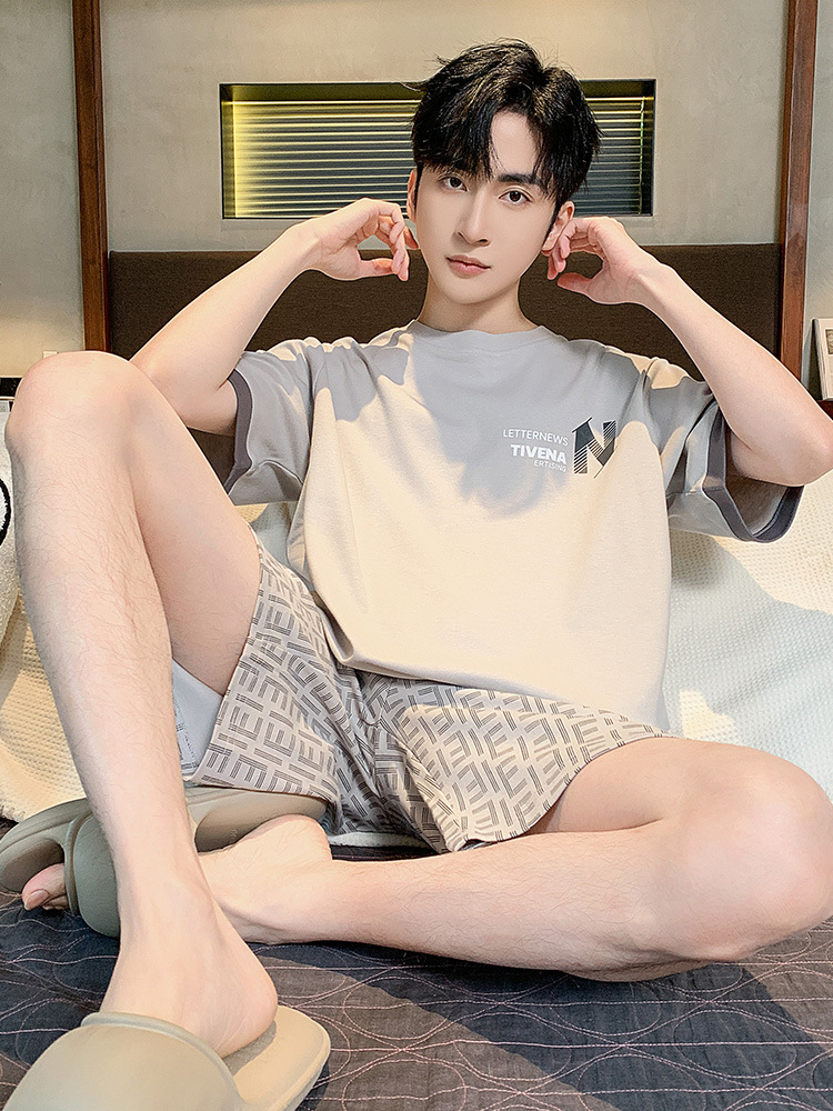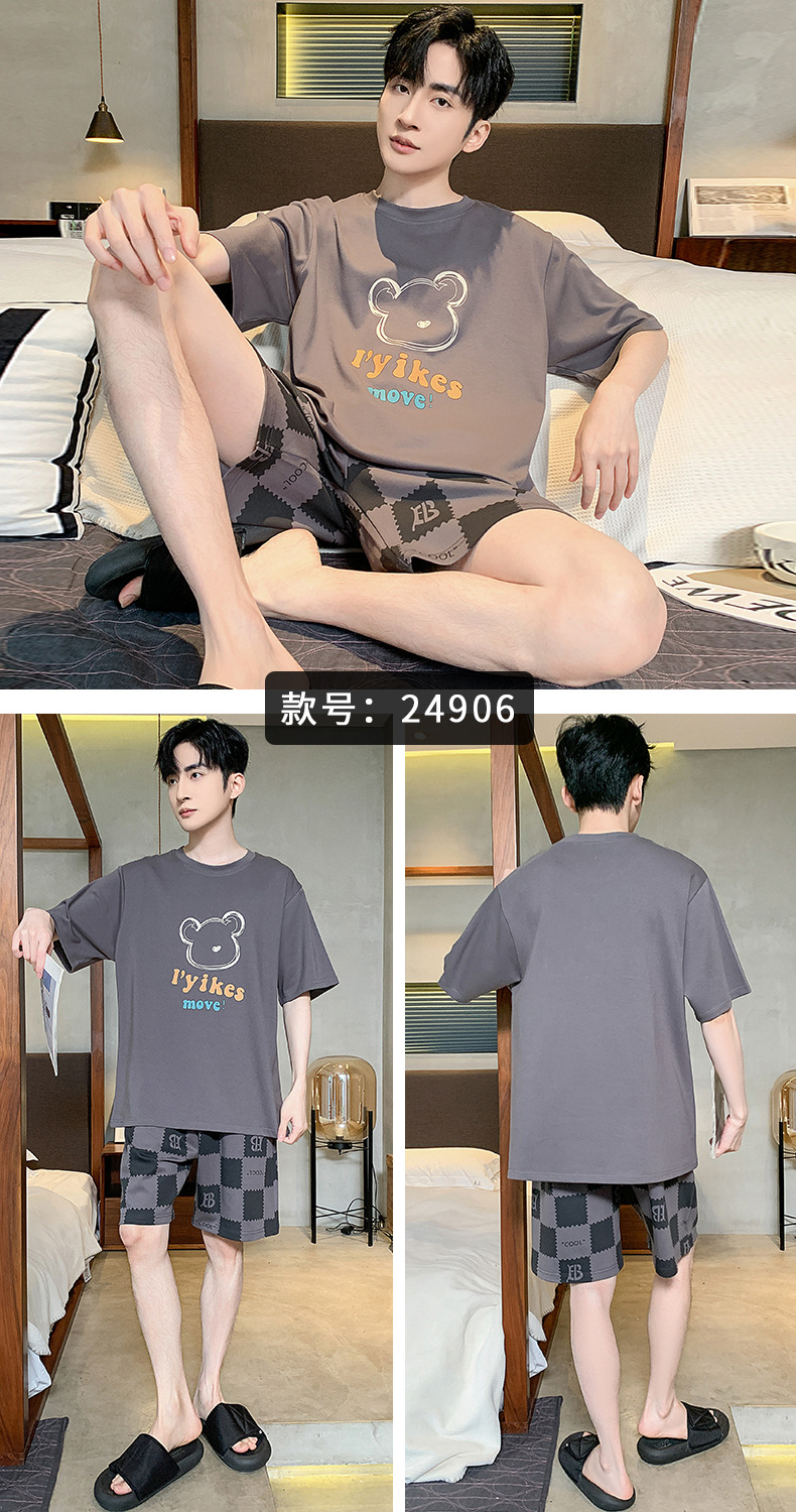 남성용 잠옷 봄과 여름 코튼 반팔 2024 뉴 유스 보이즈 스타일은 플러스 사이즈 홈웨어 밖에서 착용 할 수 있습니다.스토어 가기