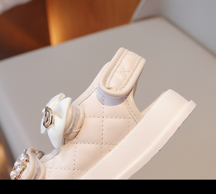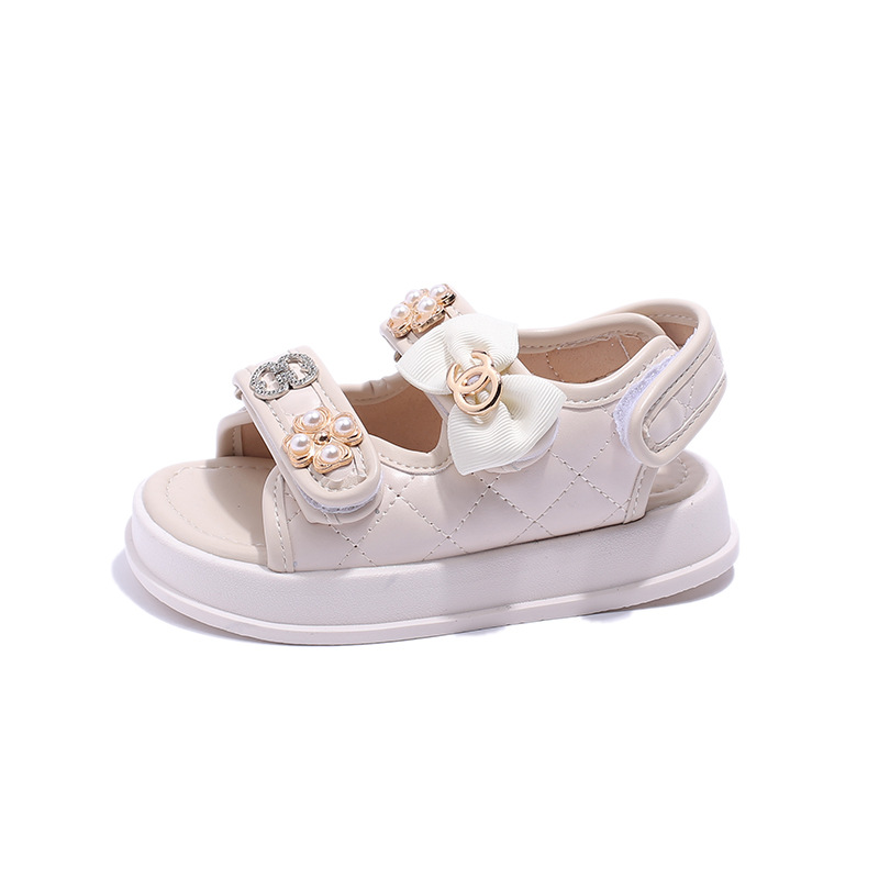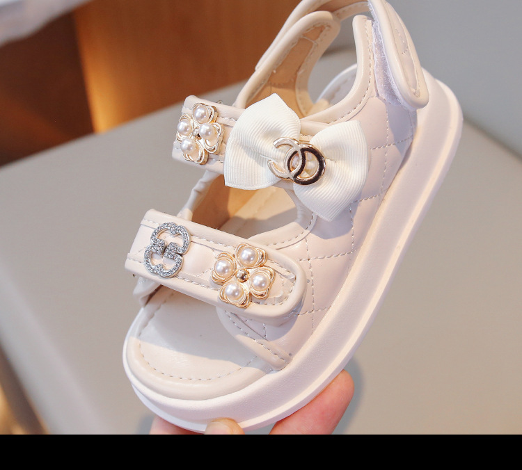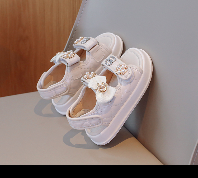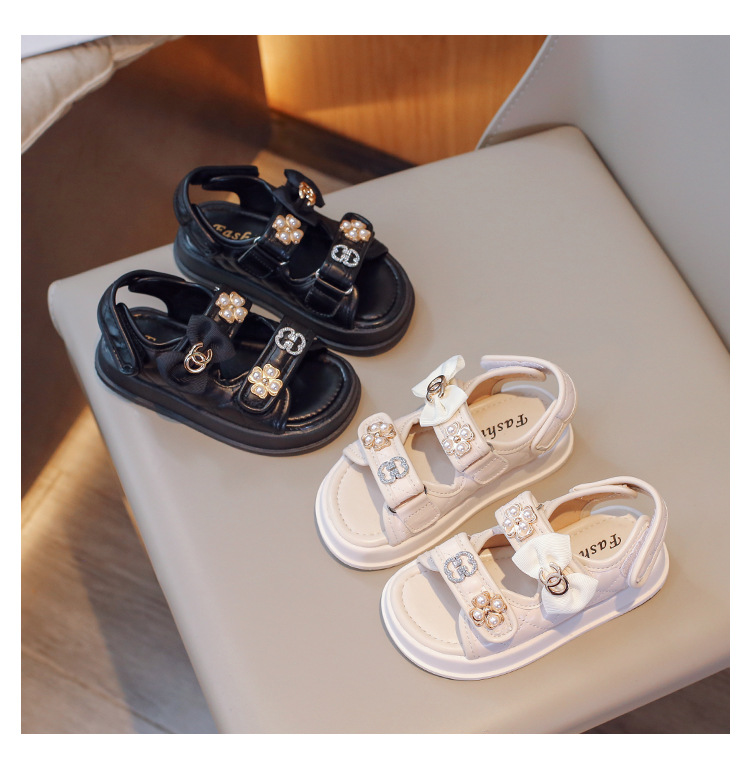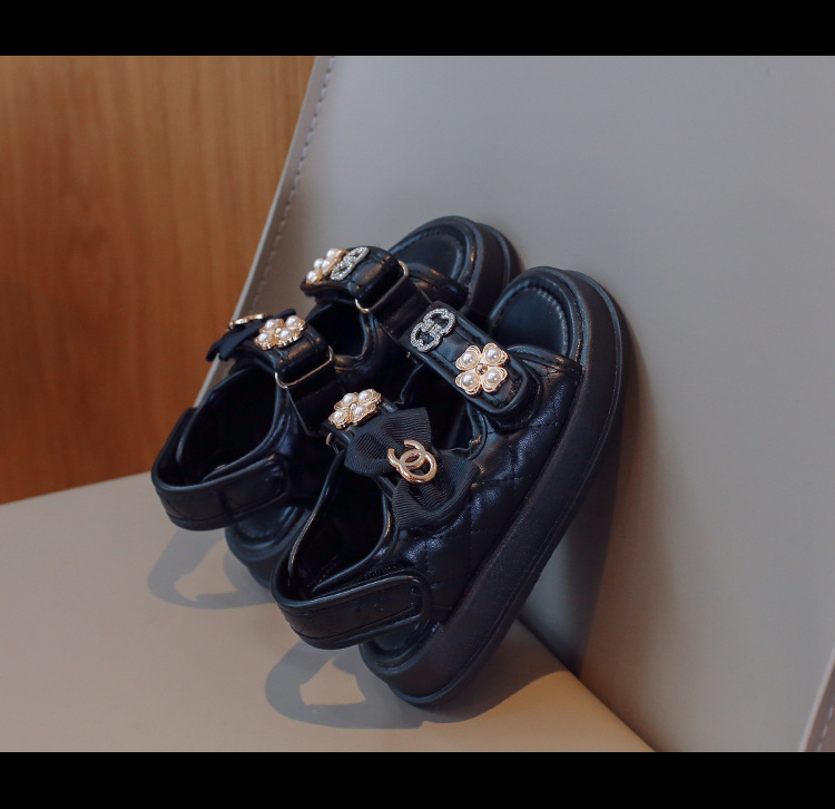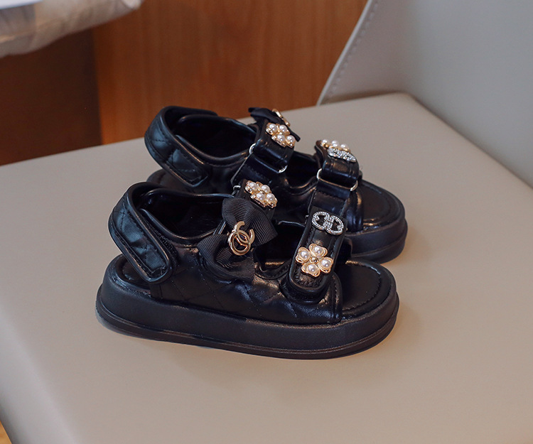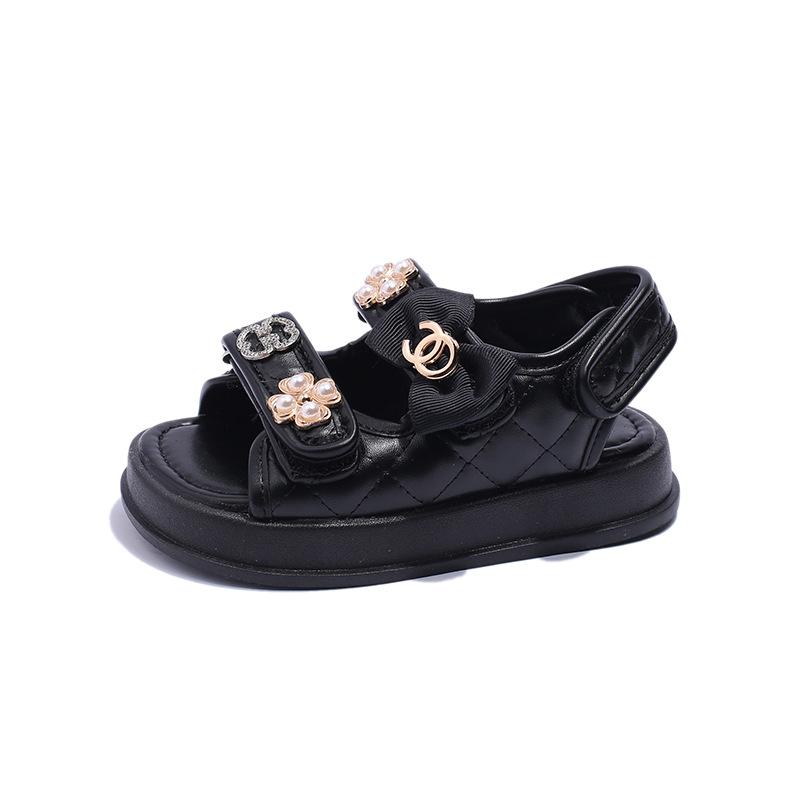 소녀 샤넬 스타일 샌들 2024 여름 새로운 패션 어린이 벨크로 비치 신발 부드러운 바닥 공주 신발 공주
