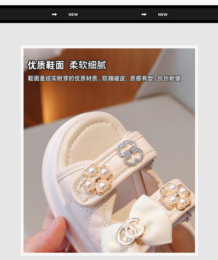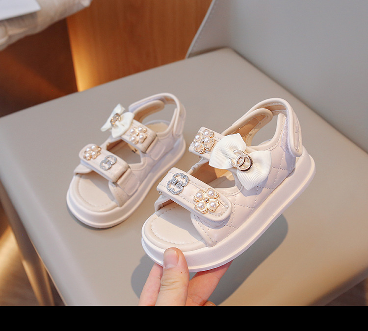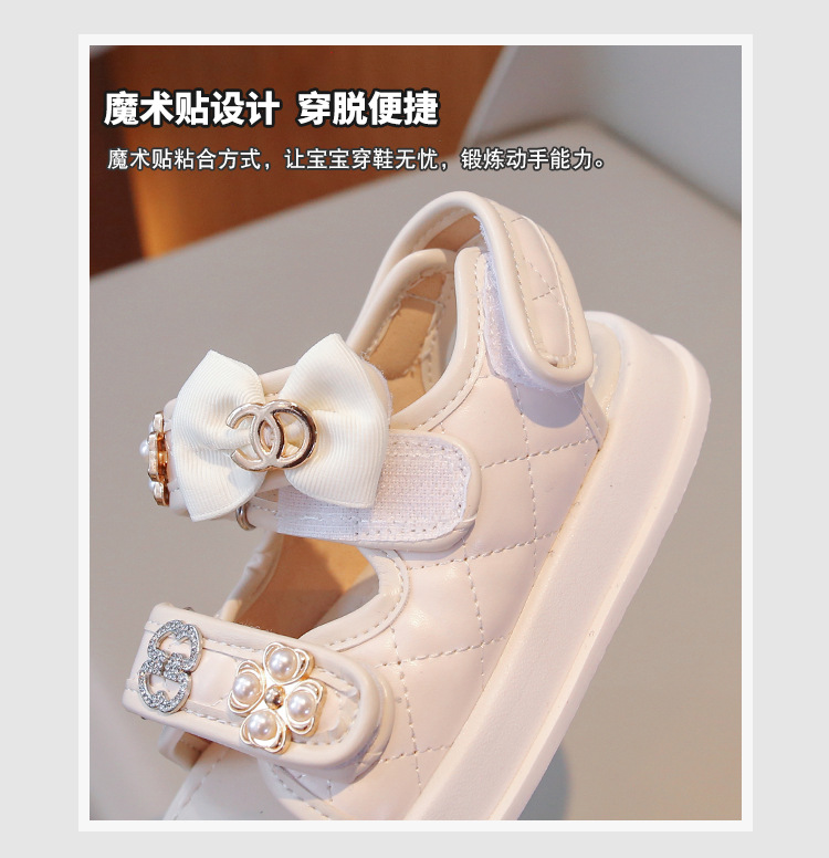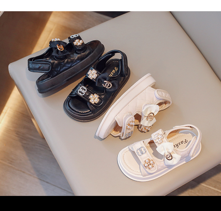 소녀 샤넬 스타일 샌들 2024 여름 새로운 패션 어린이 벨크로 비치 신발 부드러운 바닥 공주 신발 공주스토어 가기