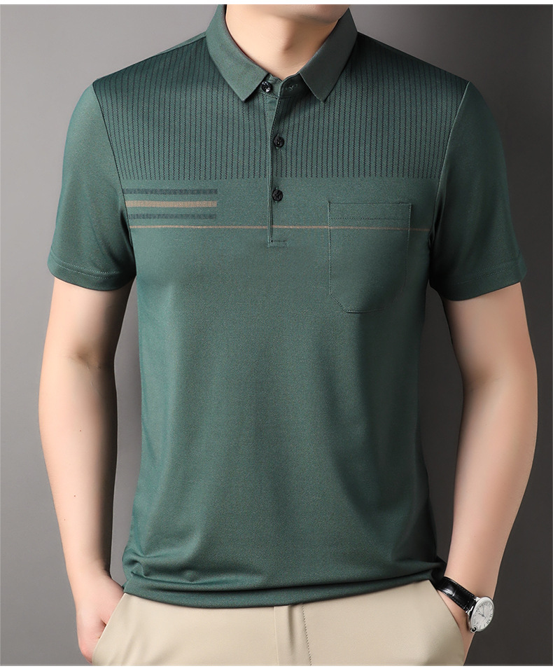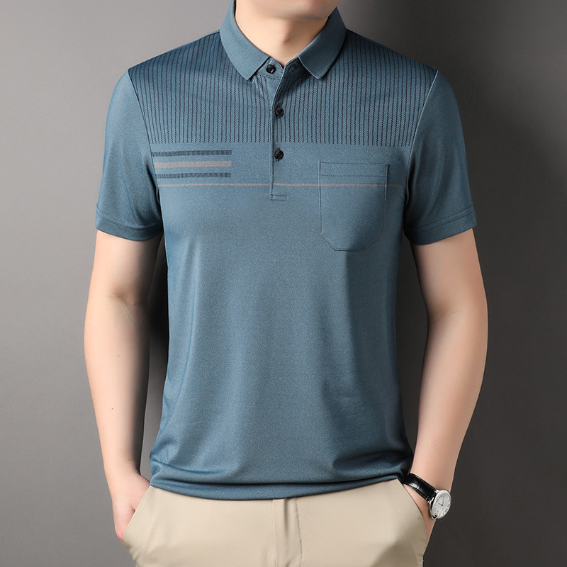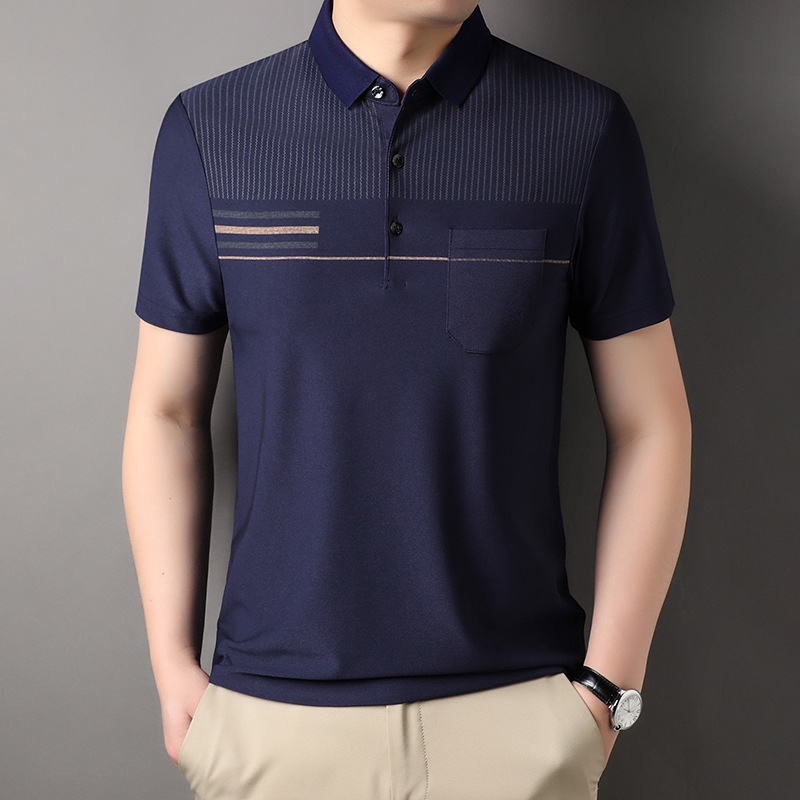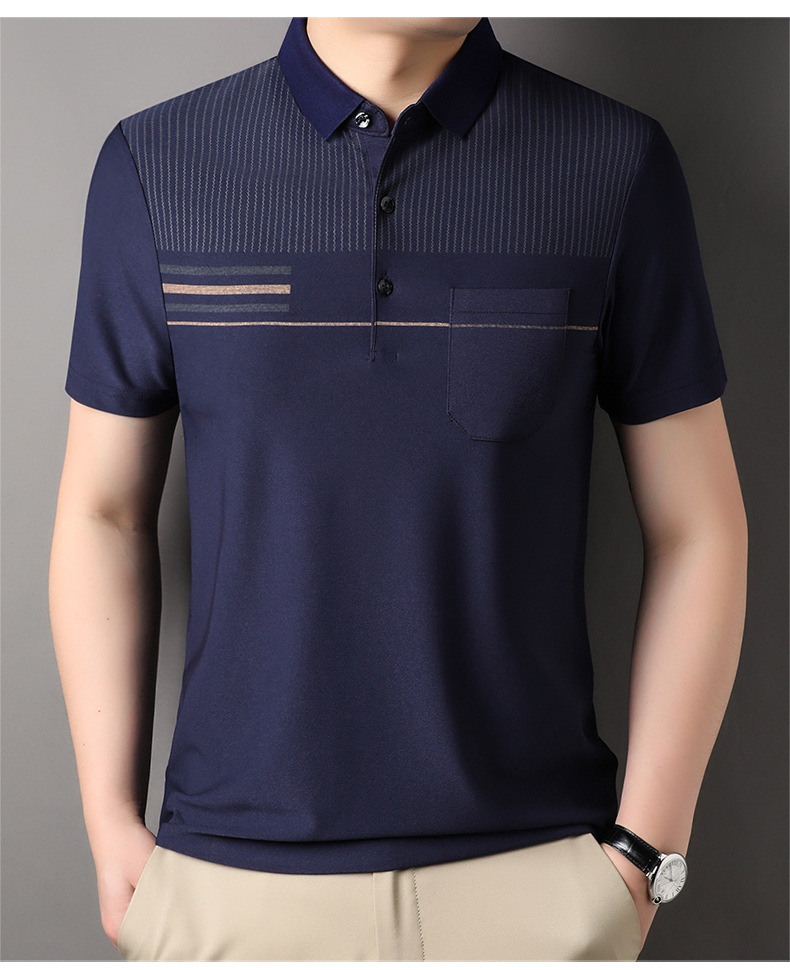 2024 여름 사업 대외 무역 셔츠 남성면 반팔 티셔츠 세로 줄무늬 옷깃 폴로 셔츠 캐주얼 청소년 느슨한 남성