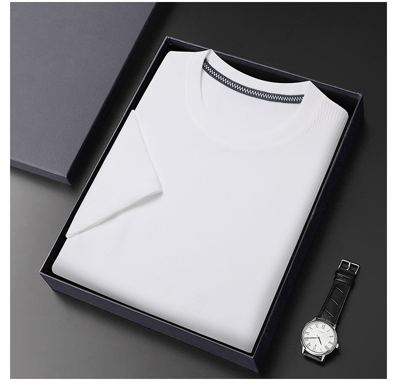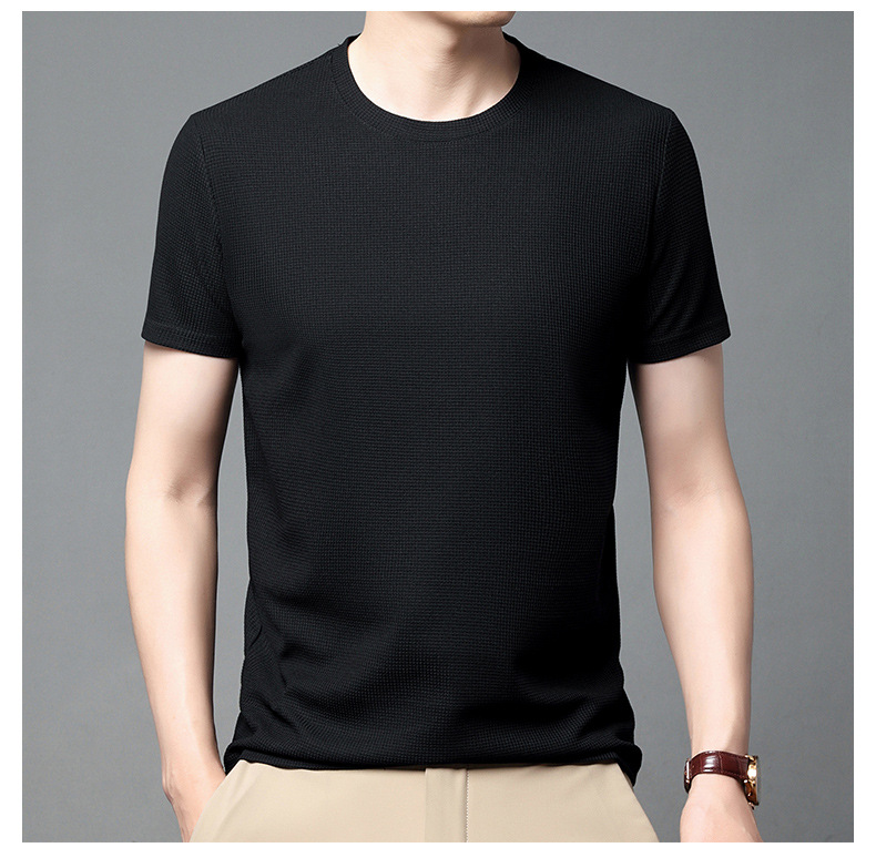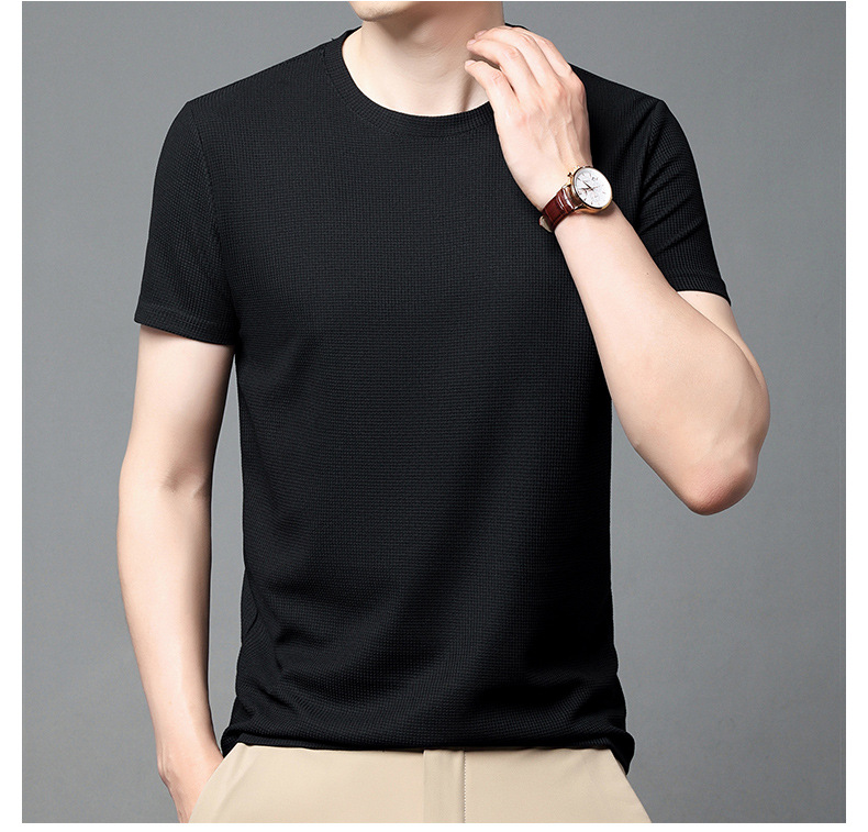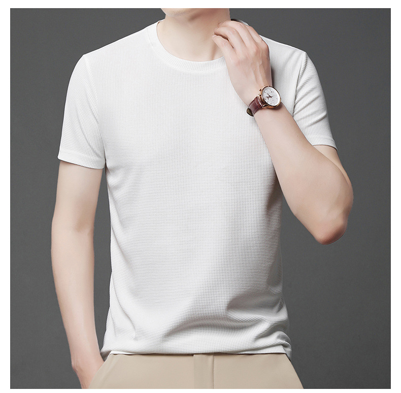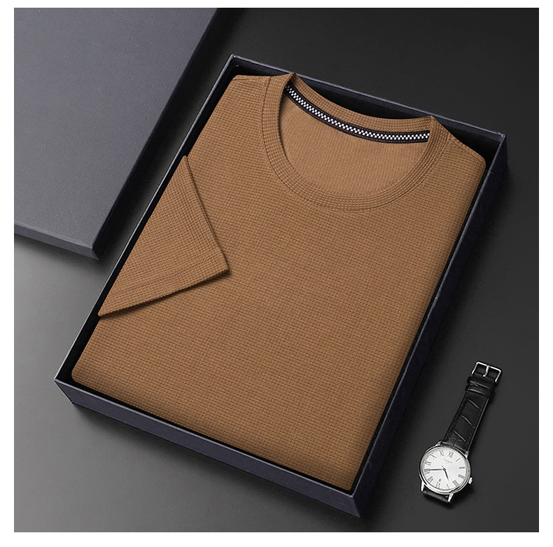 와플 반소매 순수 티셔츠 남성용 젊고 중년의 세련된 간단한 반소매 얇은 탑 편안한 빠른 건조 티셔츠