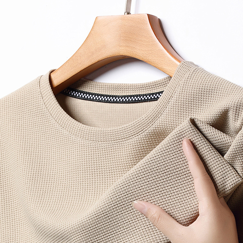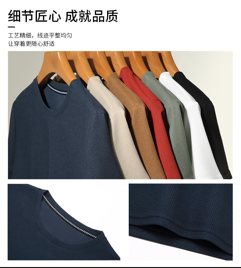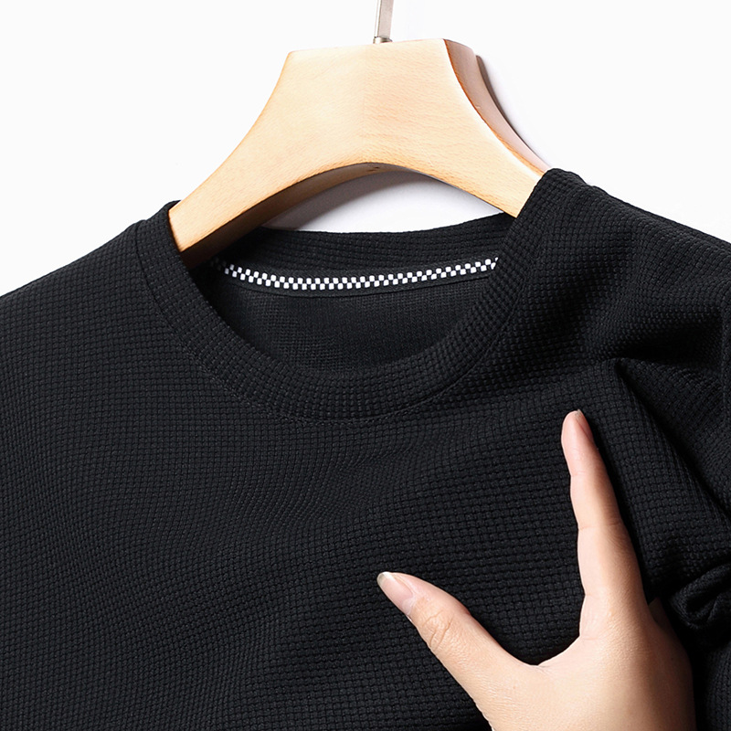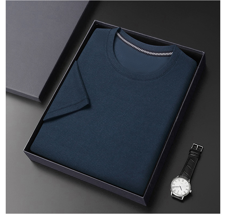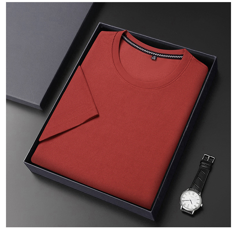 와플 반소매 순수 티셔츠 남성용 젊고 중년의 세련된 간단한 반소매 얇은 탑 편안한 빠른 건조 티셔츠