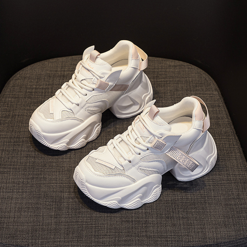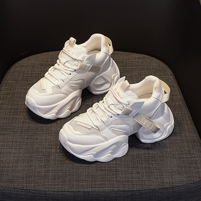 아빠 신발 2025 새로운 두꺼운 밑창 투명 메쉬 내부 높이 8cm 인터넷 연예인 캐주얼 다재다능한 패션 스타일 작은 여성 신발스토어 가기